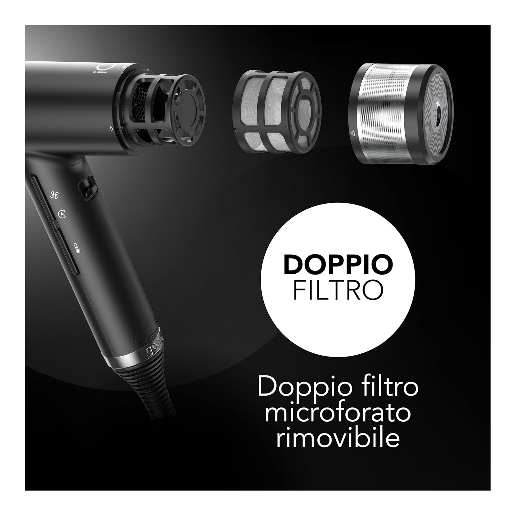 - ⚙️ Motore brushless da 110 000 rpm per tempi di asciugatura ridotti.