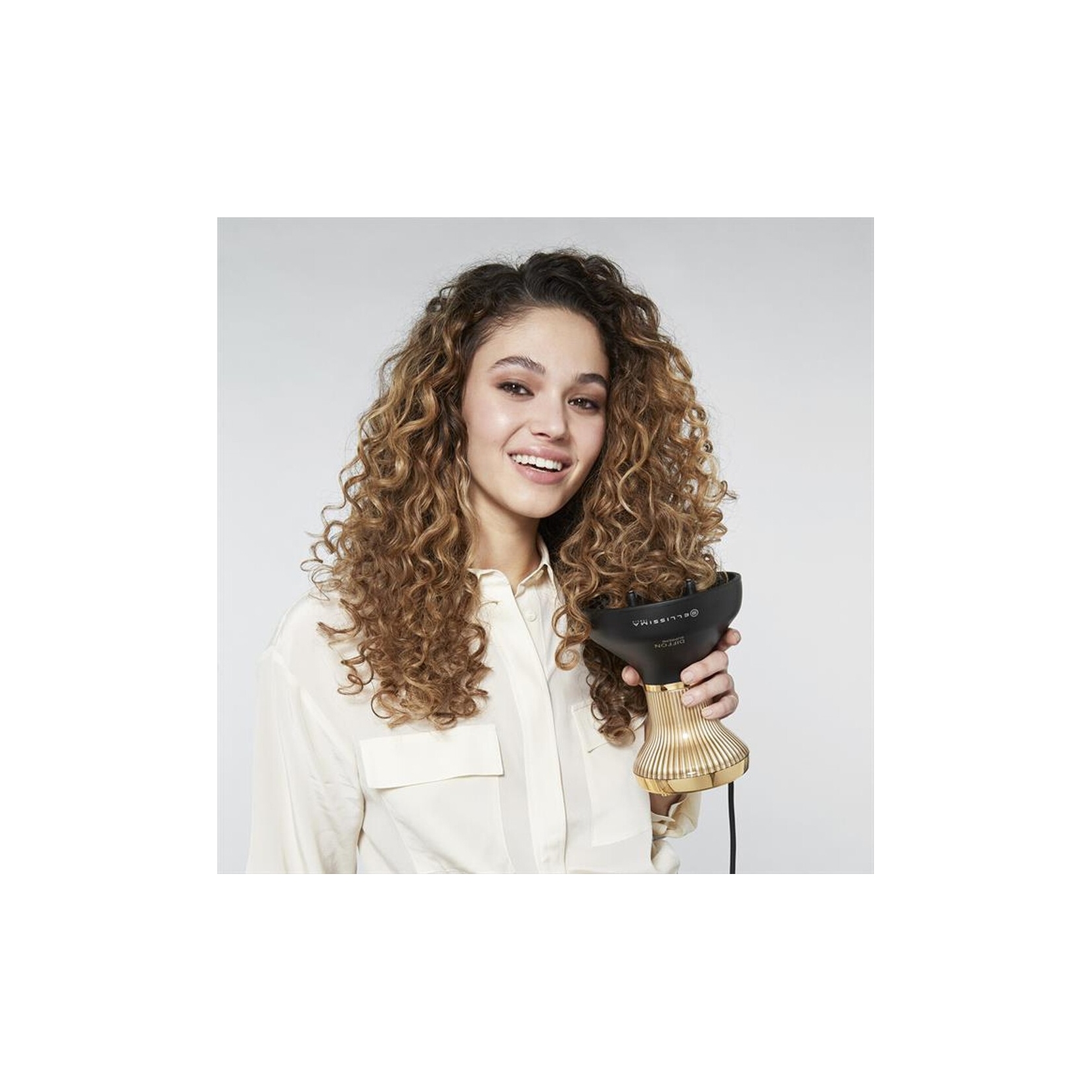 SUPREME CURL FLOW: Per diffondere l’aria più uniformemente intorno ai ricci e simulare l’asciugatura naturale, aiutando a ridurre l’effetto crespo, per ricci morbidi, elastici e definiti