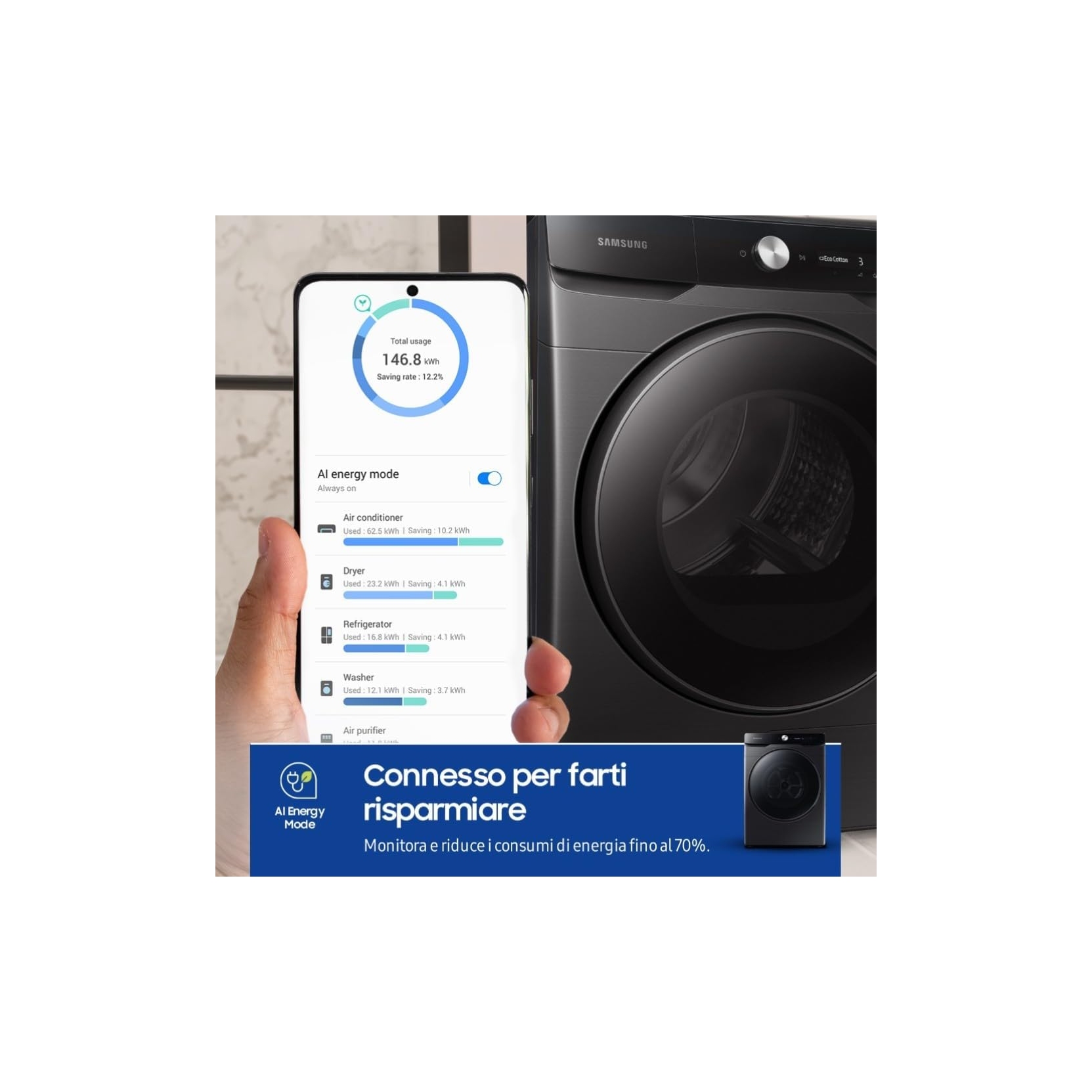- AI Control con Wi-Fi e SmartThings — apprende le tue abitudini di asciugatura e suggerisce programmi personalizzati.