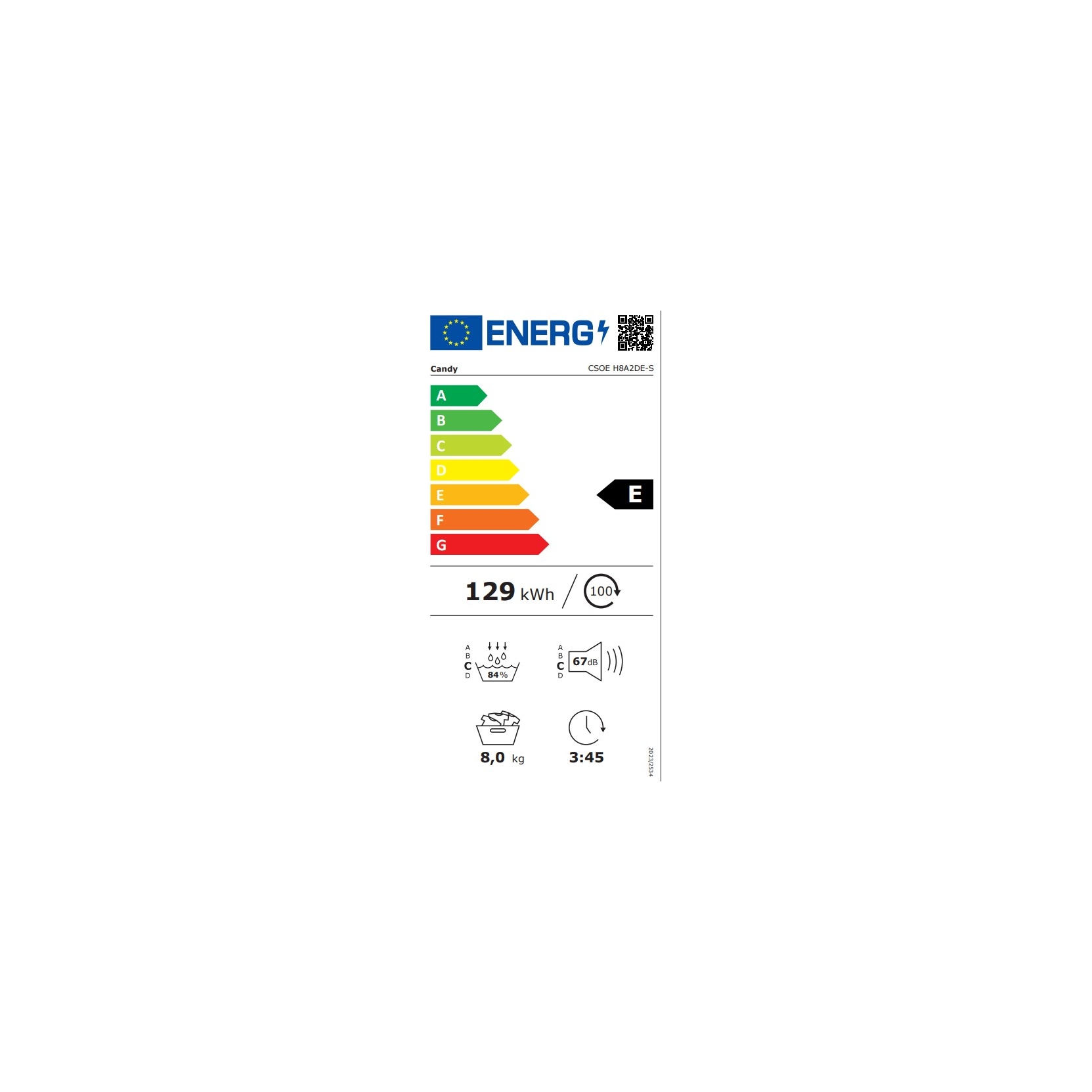 CANDY CSOE H8A2DE-S. Asciugatrice a pompa di calore - Carica frontale - Capacità: 8 kg - 16 programmi - Classe energetica: E (ex A++) - Partenza ritardata - ZERO SPESE PAYPAL - SPEDIZIONE GRATUITA