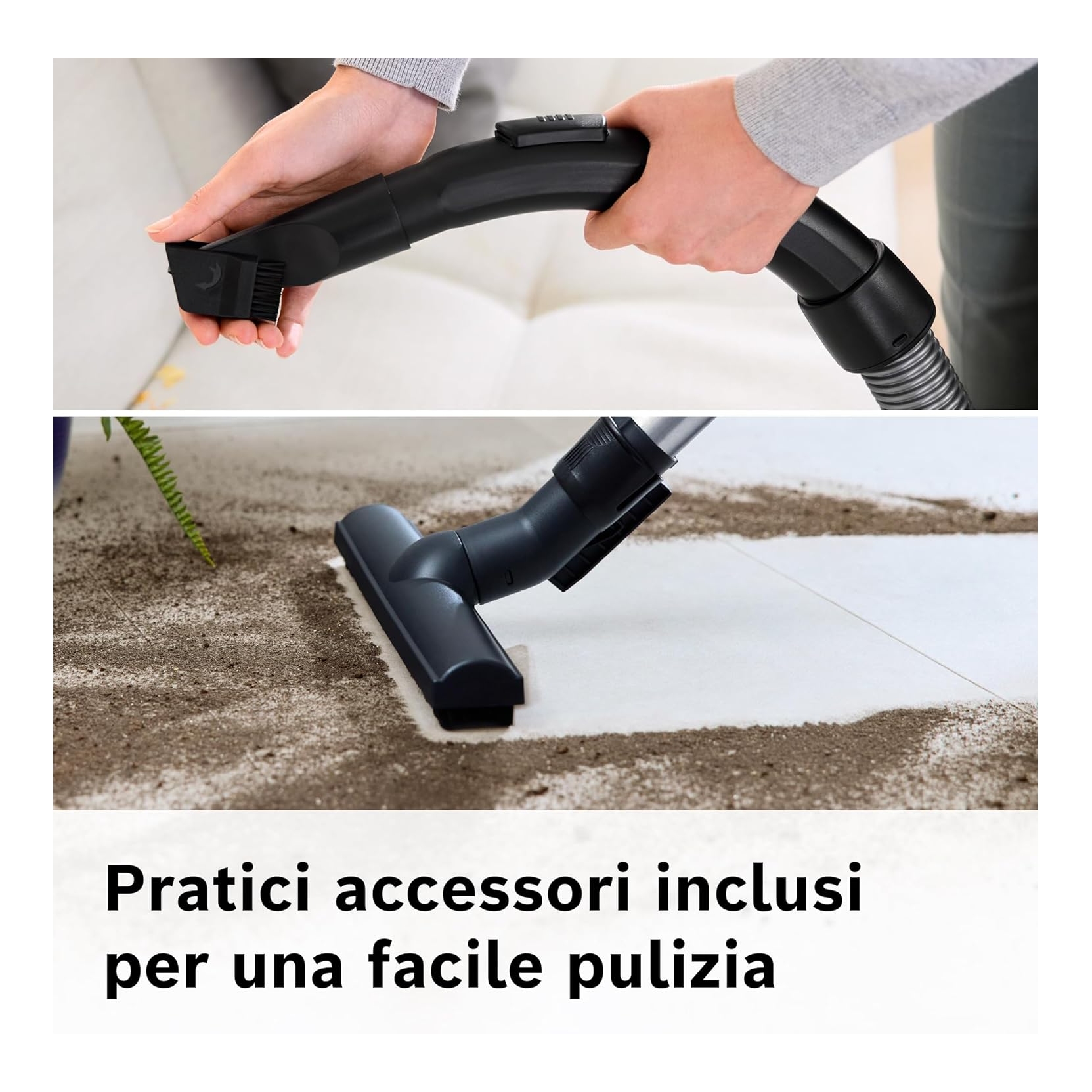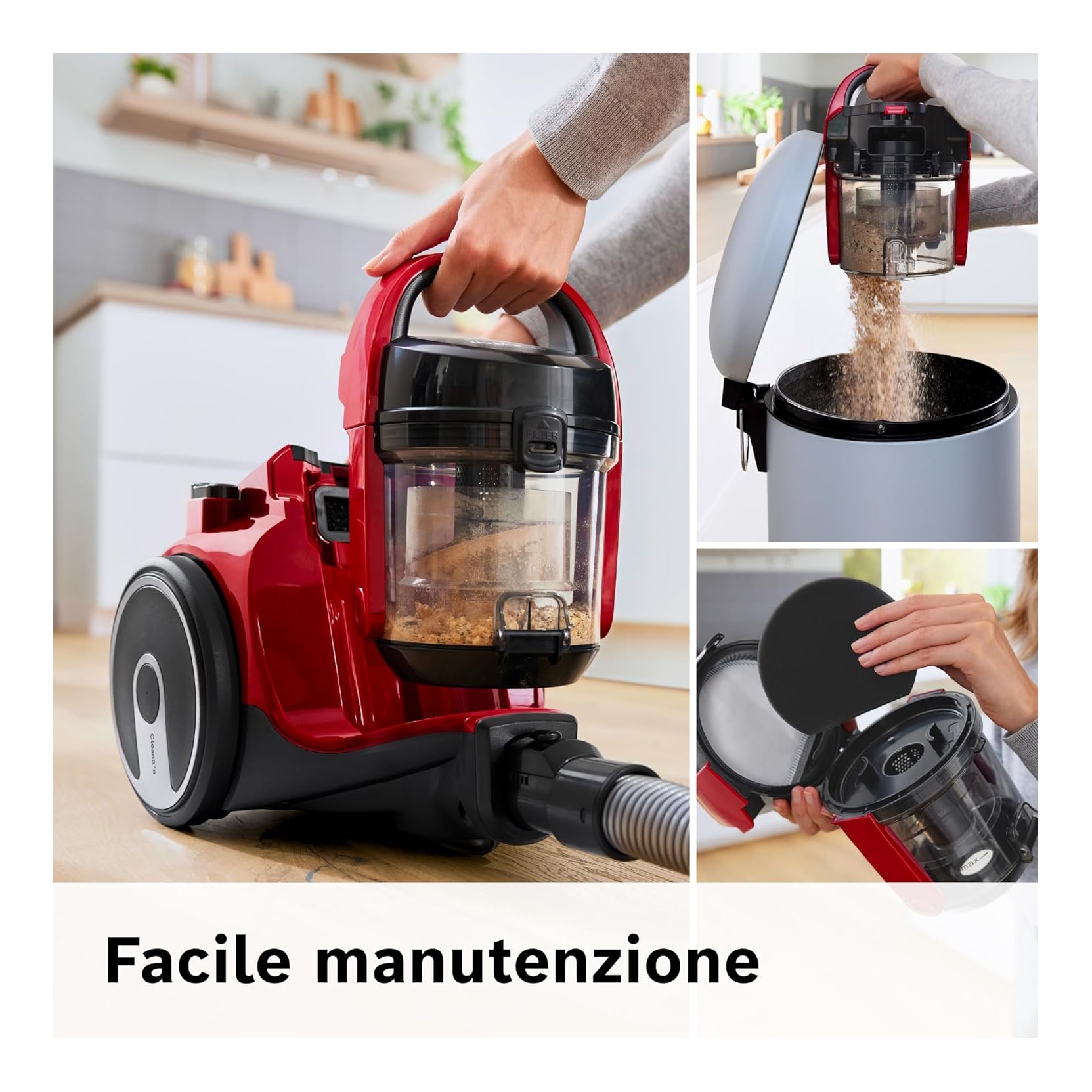 - 📦 Capacità contenitore 1,5 litri – senza sacco, più economia nell’uso.