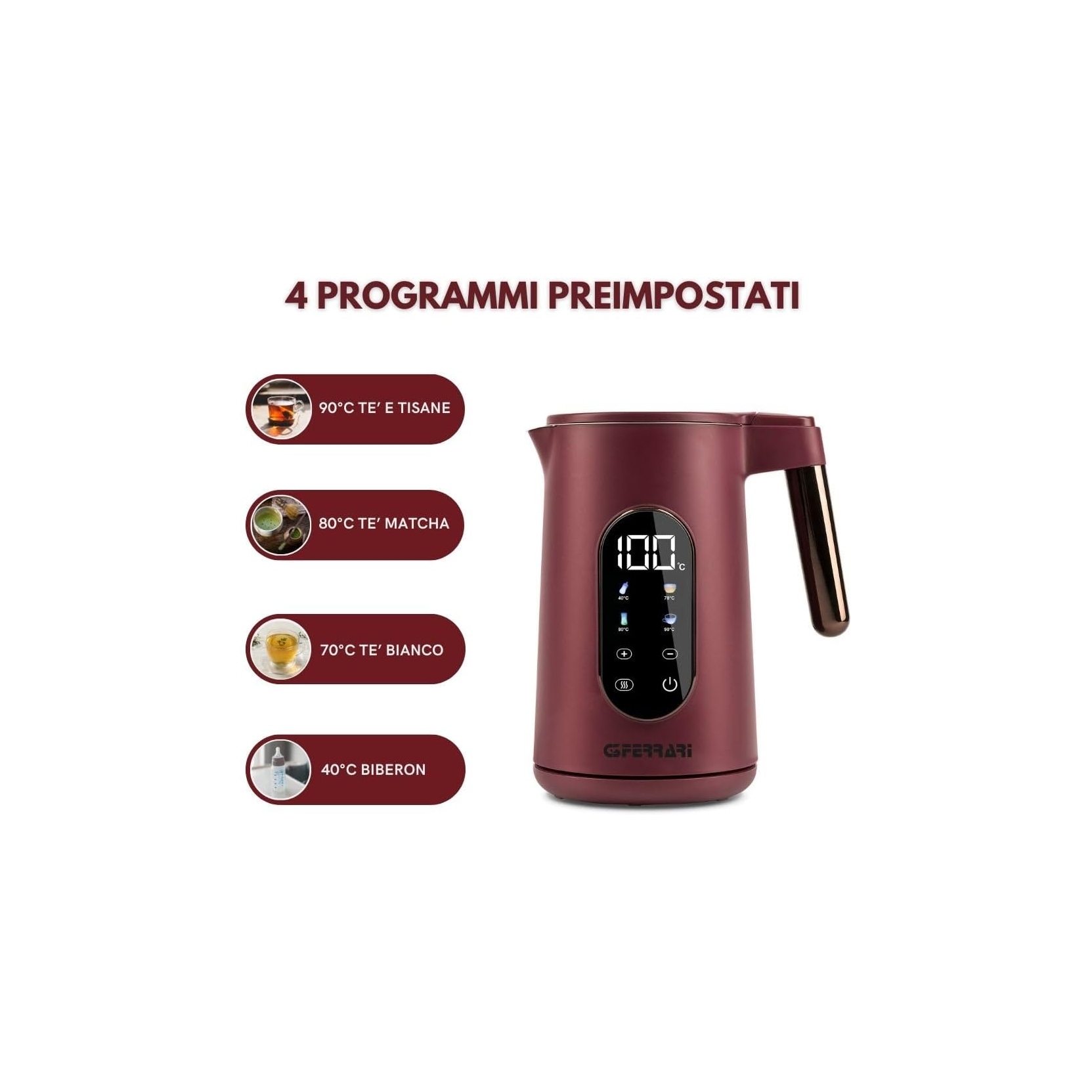 G3 Ferrari G10205. Bollitore per Tè Matcha, Tè Bianco, Tisane - Potenza: 2200 w - Capacità: 1,7 lt - 4 Programmi preimpostati - Display Touch Screen - Temperatura Regolabile - Base con rotazione 360°C - Contenitore INOX e corpo anti-scottatura - ZERO SPESE PAYPAL - SPEDIZIONE GRATUITA
