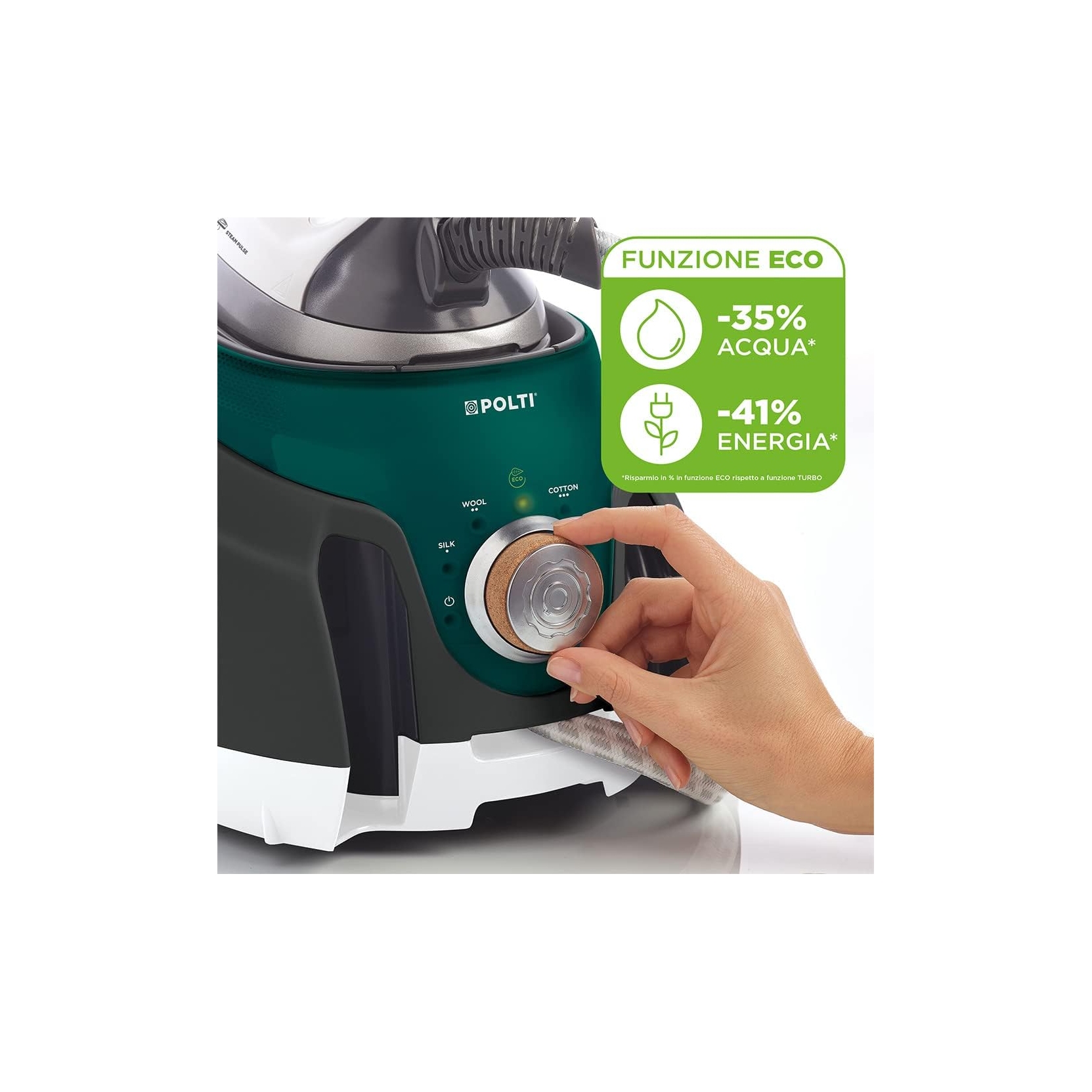 Per ridurre i consumi in modo intelligente senza rinunciare alle prestazioni scegli Eco: -41% di energia e -35% di acqua**.