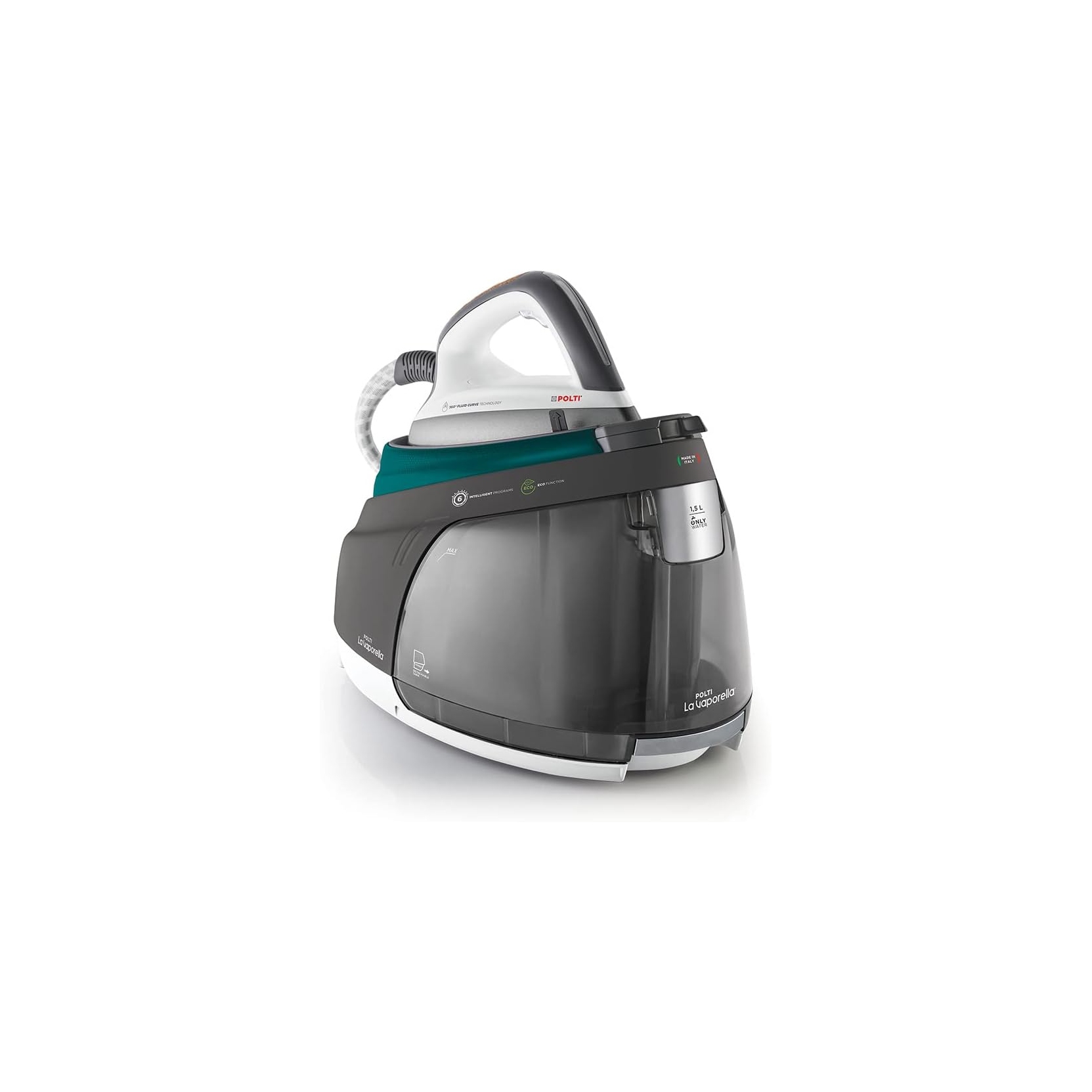 CARATTERISTICHE: Ferro da stiro con caldaia - Riscaldamento in 2 minuti - Con tasto super vapore - Con spia pronto vapore - Con sistema anticalcare - Potenza 2350 Watt max - Pressione 8,5 bar - Piastra in alluminio - Tecnologia piastra: 360° Fluid Curve Technology - Pompa a 15 bar (max) - Serbatoio estraibile da 1,5 L - Steam Pulse - Vapore intermittente: 600 g - 6 programmi preimpostati di stiratura - Made in Italy - ZERO SPESE PAYPAL - SPEDIZIONE GRATUITA