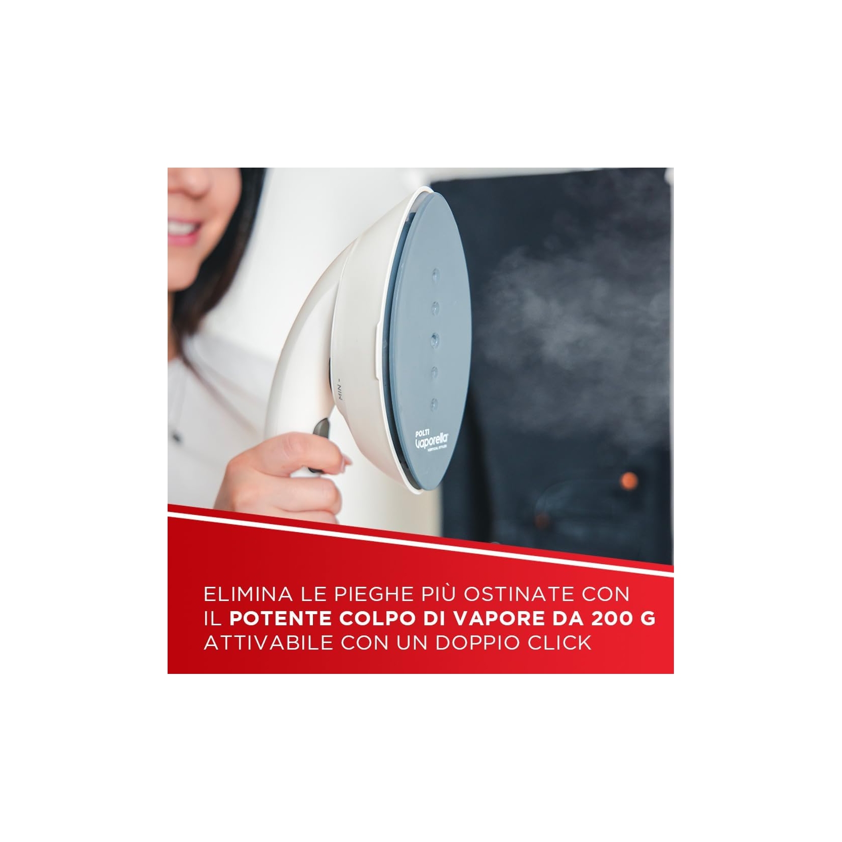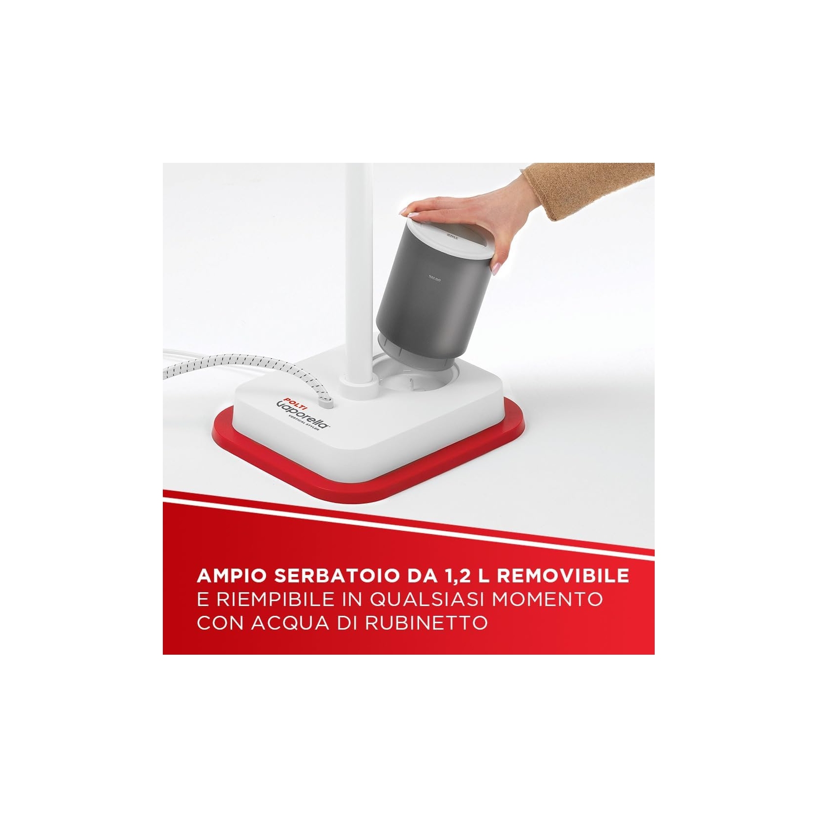 Polti Vaporella Vertical Styler GSF80R è la stiratrice verticale da terra pratica, versatile ed efficiente, pronta all'uso in soli 30 secondi