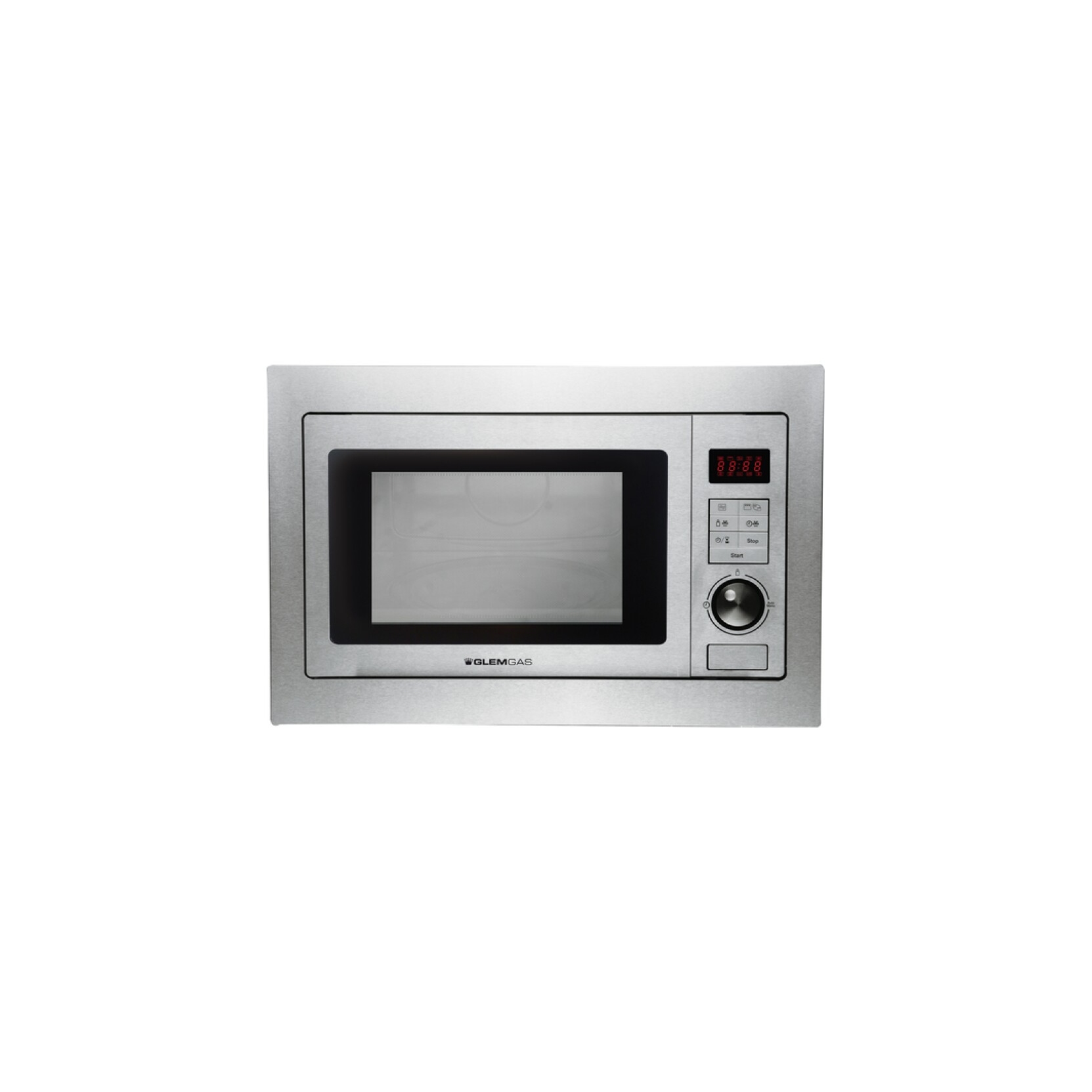 Glem Gas GMI253IX. Forno microonde da incasso - Con grill - 8 programmi automatici - Controlli Digitali - 5 livelli di potenza - Cavità inox - Potenza microonde: 900 W - Potenza grill: 1000 W - Volume utile 25 lt - Funzione scongelamento automatica - Programmatore elettronico con segnale fine cottura - Timer 95' - Orologio digitale - Piatto girevole 31,5 cm - Sicurezza bambini -
