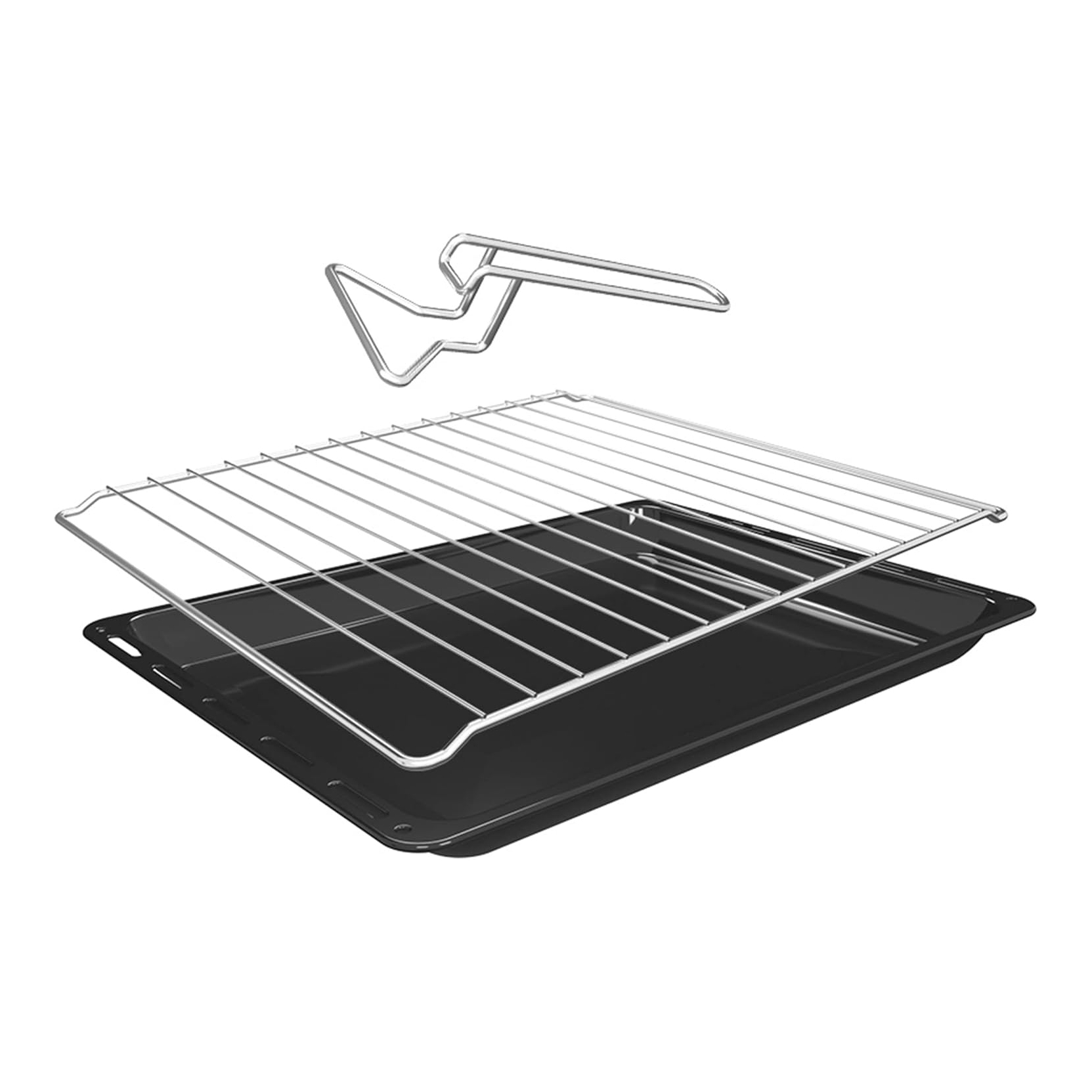 Accessori in dotazione: leccarda smaltata, griglia e pinza.