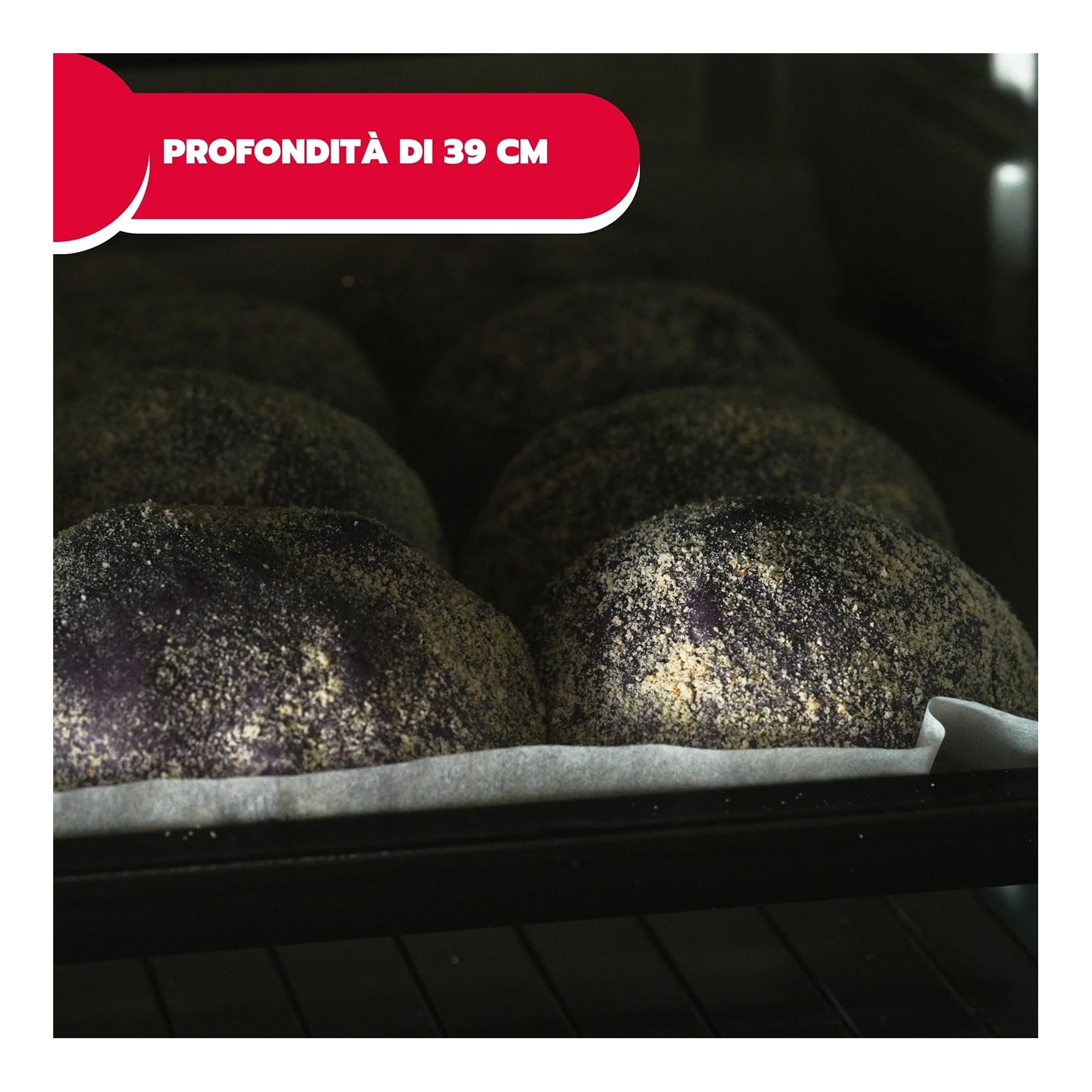 Forno elettrico ventilato con grande capienza, ottima alternativa al forno da incasso. Cavità antiaderente smaltata, di facilissima pulizia. Dimensione scomparto 43,8 x 41,4 x 23,7 cm cm, può contenere un piatto di diametro 40 cm.