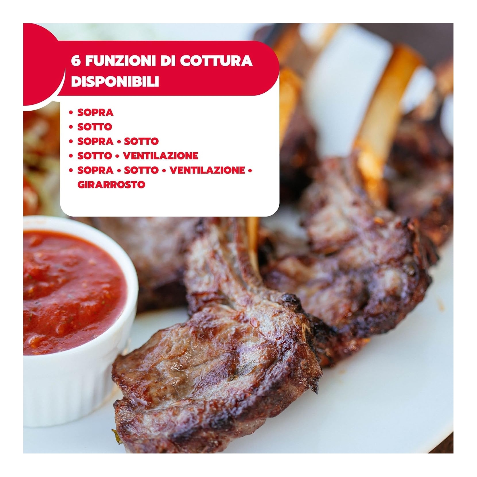 Le diverse funzioni lo rendono molto versatile e semplice da usare. La funzione ventilazione permette una cottura più veloce e uniforme dei cibi che lascia i cibi fragranti fuori e più umidi all’interno. Il forno statico, invece, produce una cottura più lenta e più delicata, ideale per ottenere pietanze ben cotte e asciutte anche all’interno.