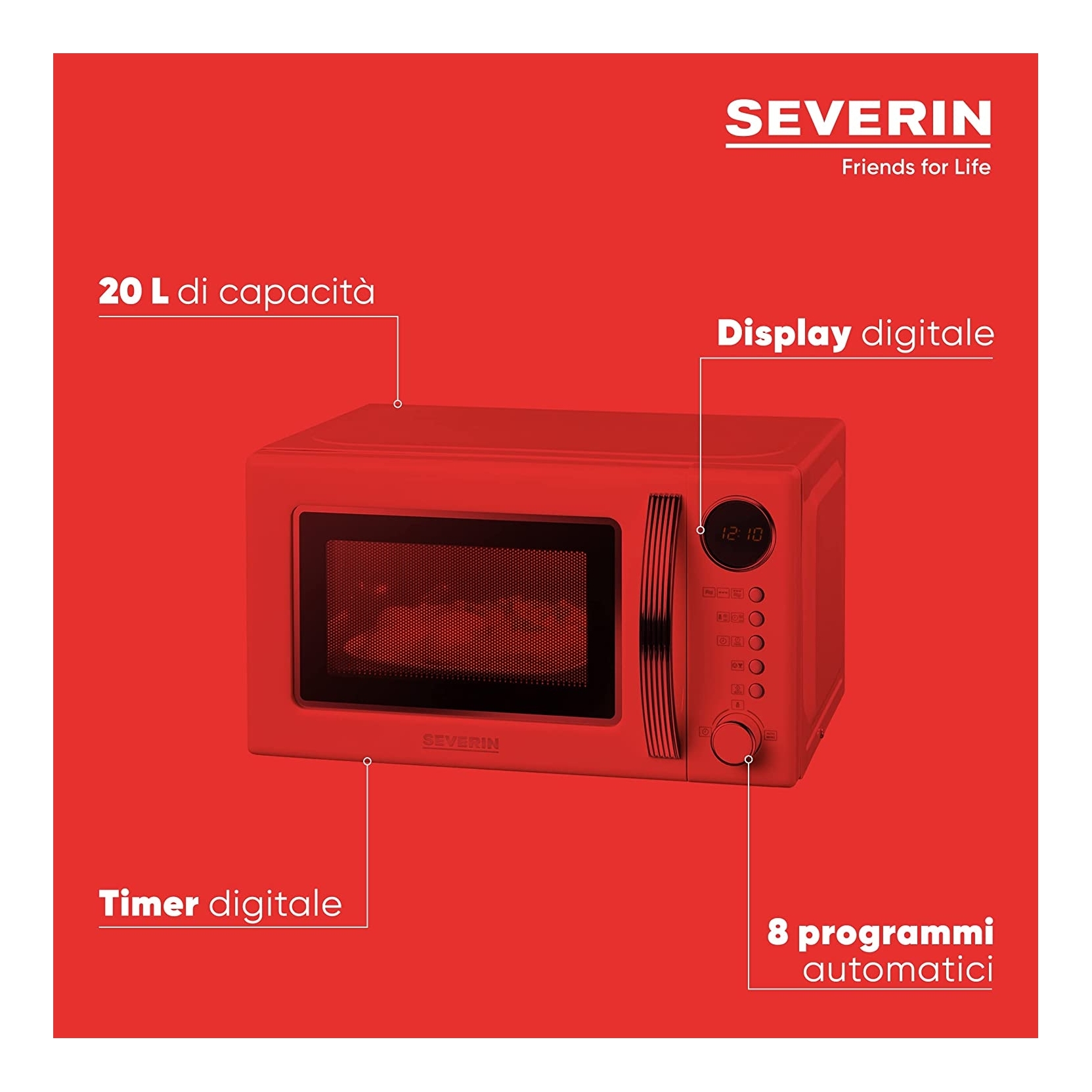 SEVERIN MW7893. Forno a microonde rétro - Funzione grill - Capacità: 20 litri - Potenza microonde: 700 W - Potenza grill: 1.000 W - 5 livelli di potenza - 8 diversi programmi - Display multifunzione digitale - Diametro piatto rotante: 25,4 cm (amovibile) - ZERO SPESE PAYPAL - SPEDIZIONE GRATUITA