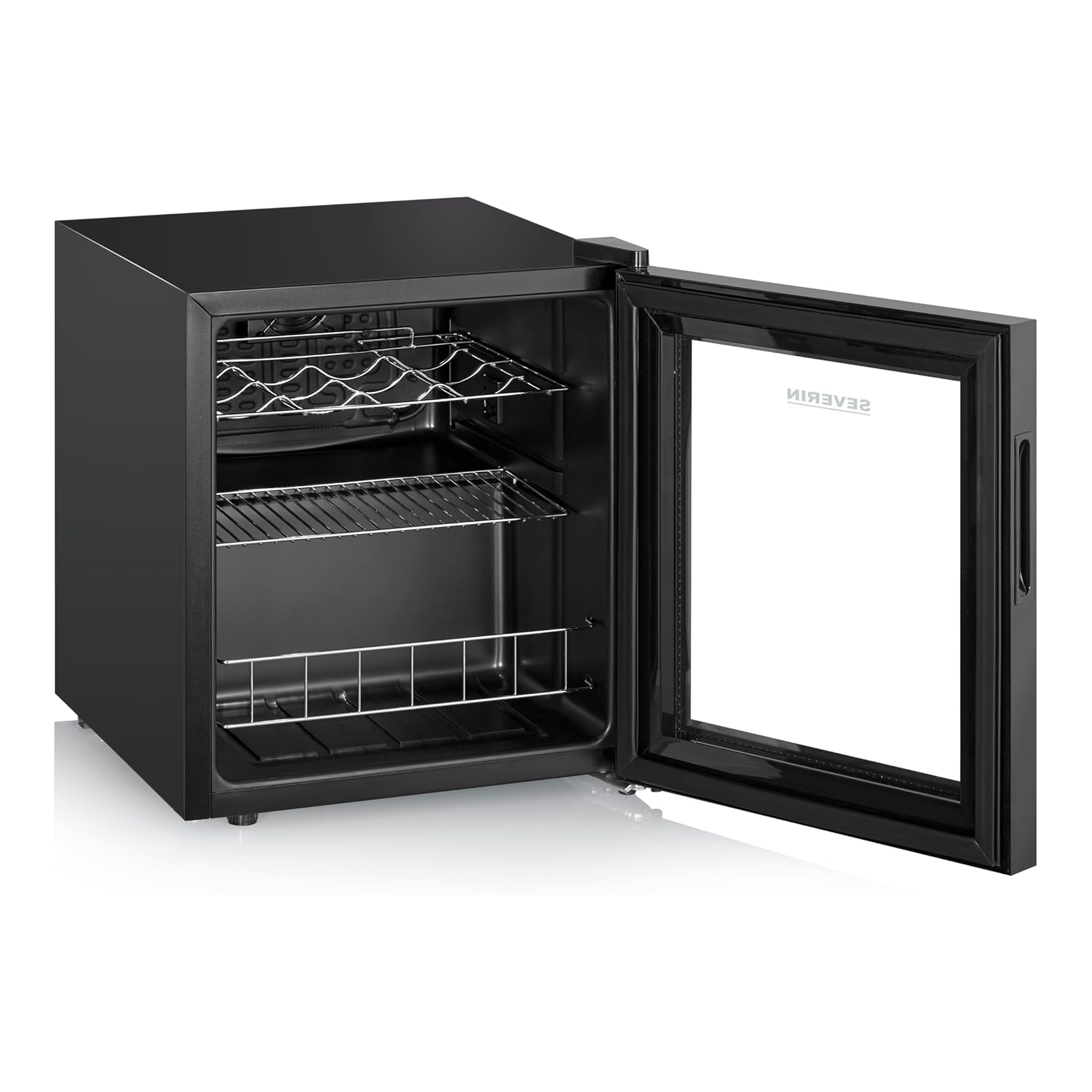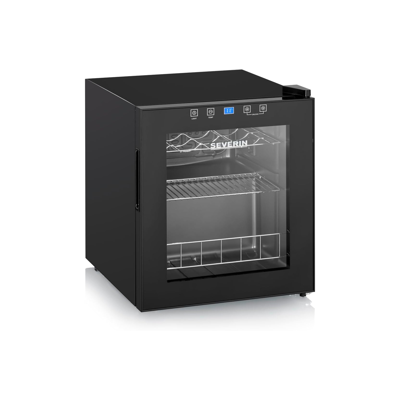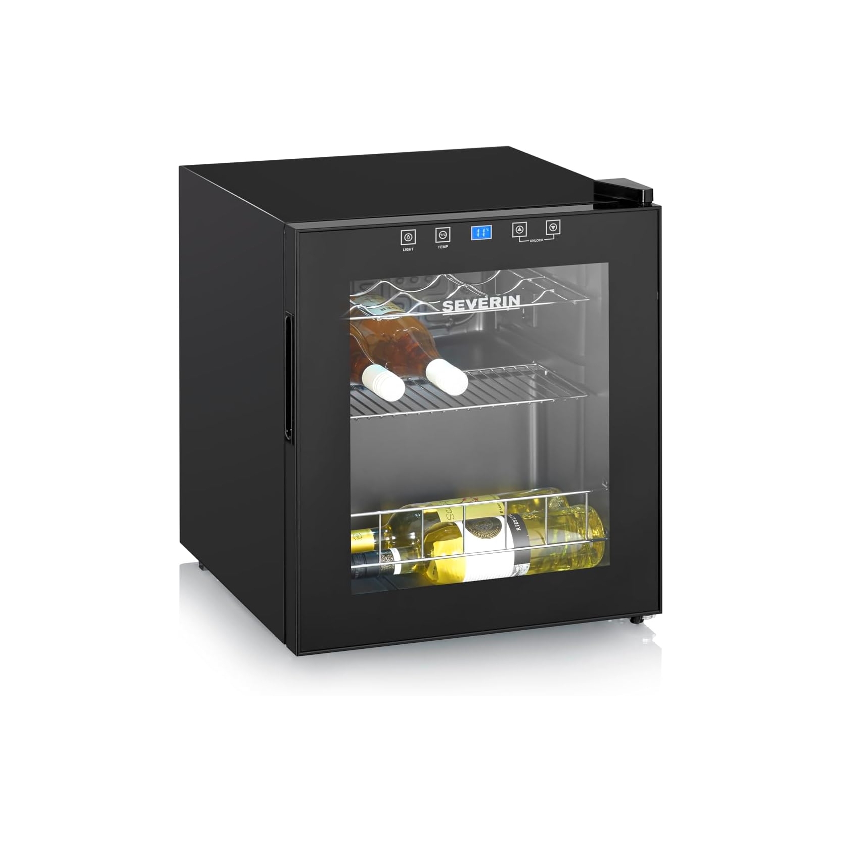 SEVERIN WKS 8907 - Cantinetta vino - Temperatura regolabile in continuo da 5 °C a 18 °C tramite un display touch per la conservazione ottimale di 15 bottiglie da 0,75 litri - Particolarmente silenzioso - Design di alta qualità con porta in vetro, telaio in plastica e 2 ripiani cromati, di cui 1 regolabile in altezza - Sbrinamento automatico - Dimensioni (A x L x P ): 51 x 43 x 48 - ZERO SPESE PAYPAL - SPEDIZIONE GRATUITA