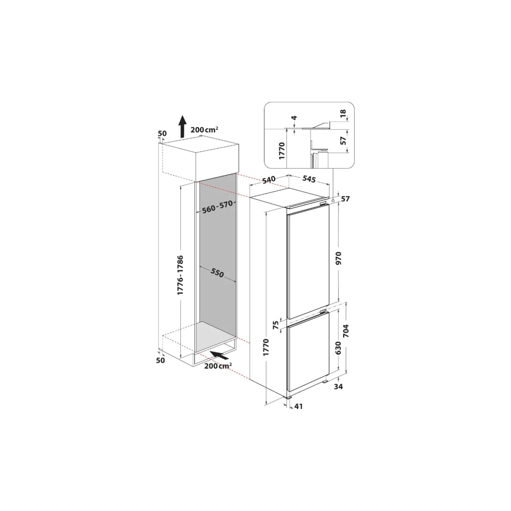 HOTPOINT ARISTON BCB70301AA. Frigorifero combinato - Installazione da incasso - Low frost nel freezer - Statico nel frigo - Ripiani in vetro, robusti ed eleganti al tempo stesso - Comodo porta-bottiglie per conservare le bottiglie con sicurezza - Classe E - 3 ripiani - Dimensioni (AxLxP): 177 x 54 x 55 cm - ZERO SPESE PAYPAL - SPEDIZIONE GRATUITA