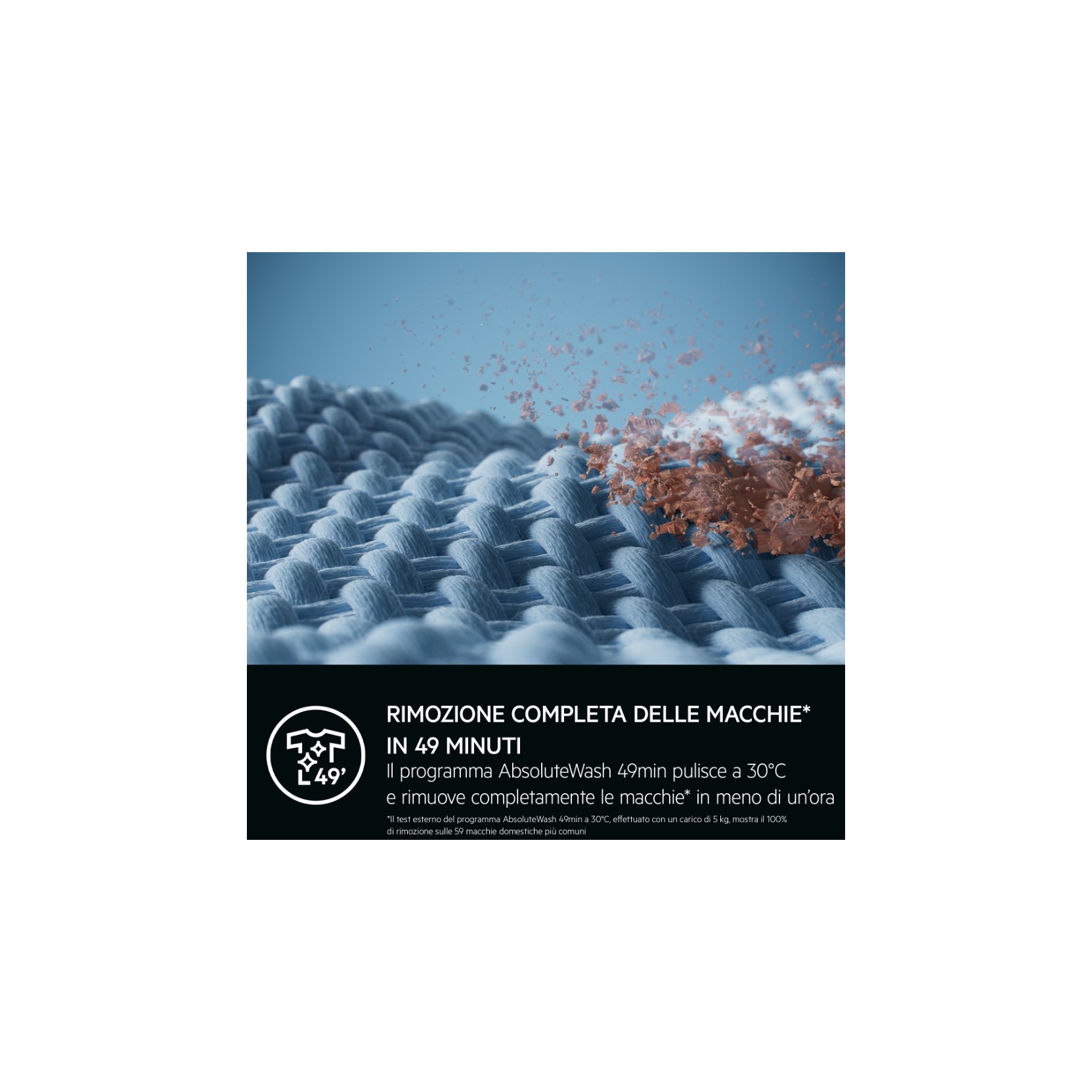 - Programma AbsoluteWash 49min: lava a 30°C, rimuove completamente le macchie in meno di 1 ora con il 30% di energia in meno