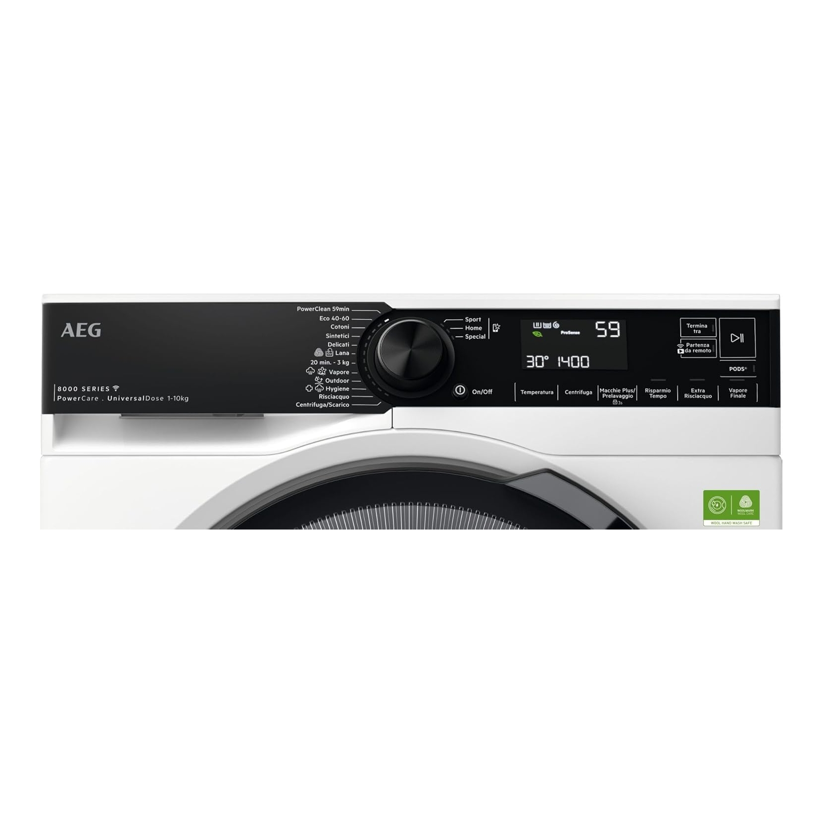 AEG LR8FH104VY. Lavatrice Serie 8000 PowerCare UniversalDose - Carica frontale - Libera installazione (FS) - Capacità 10 Kg - Centrifuga max 1400 Giri - Classe energetica A - Con tasto partenza ritardata - Motore ÖKO Inverter - Mobile antivibrazioni - Indicazione durata e tempo residuo programma - Partenza ritardata fino a 20 ore - Flussimetro e sensore di livello acqua- ZERO SPESE PAYPAL - SPEDIZIONE GRATUITA