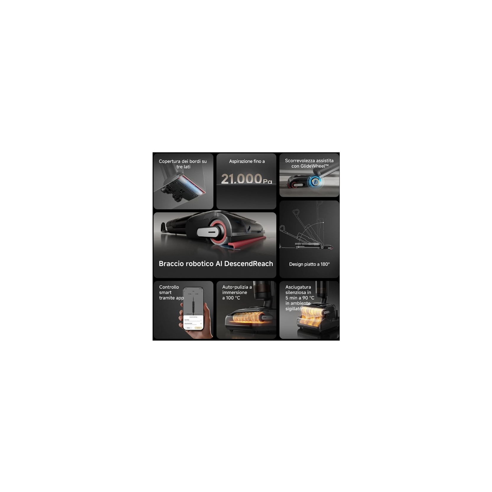 DREAME H15PROCOMBO. Aspirapolvere Lavapavimenti - Potenza di Aspirazione Eccezionale: Con 21.000 Pa, elimina anche lo sporco più ostinato, da briciole e capelli a macchie di liquidi - Tecnologia GapFree AI DescendReach: Il braccio robotico intelligente si abbassa in soli 0,2 secondi per raggiungere ogni angolo e garantire una pulizia senza compromessi - 60 min Autonomia - Autolavaggio della spazzola con acqua calda a 100°C - Modalità combinate per pulire sia pavimenti duri che tappeti con facilità- Wifi con app Dreamehome per personalizzazioni - ZERO SPESE PAYPAL - SPEDIZIONE GRATUITA