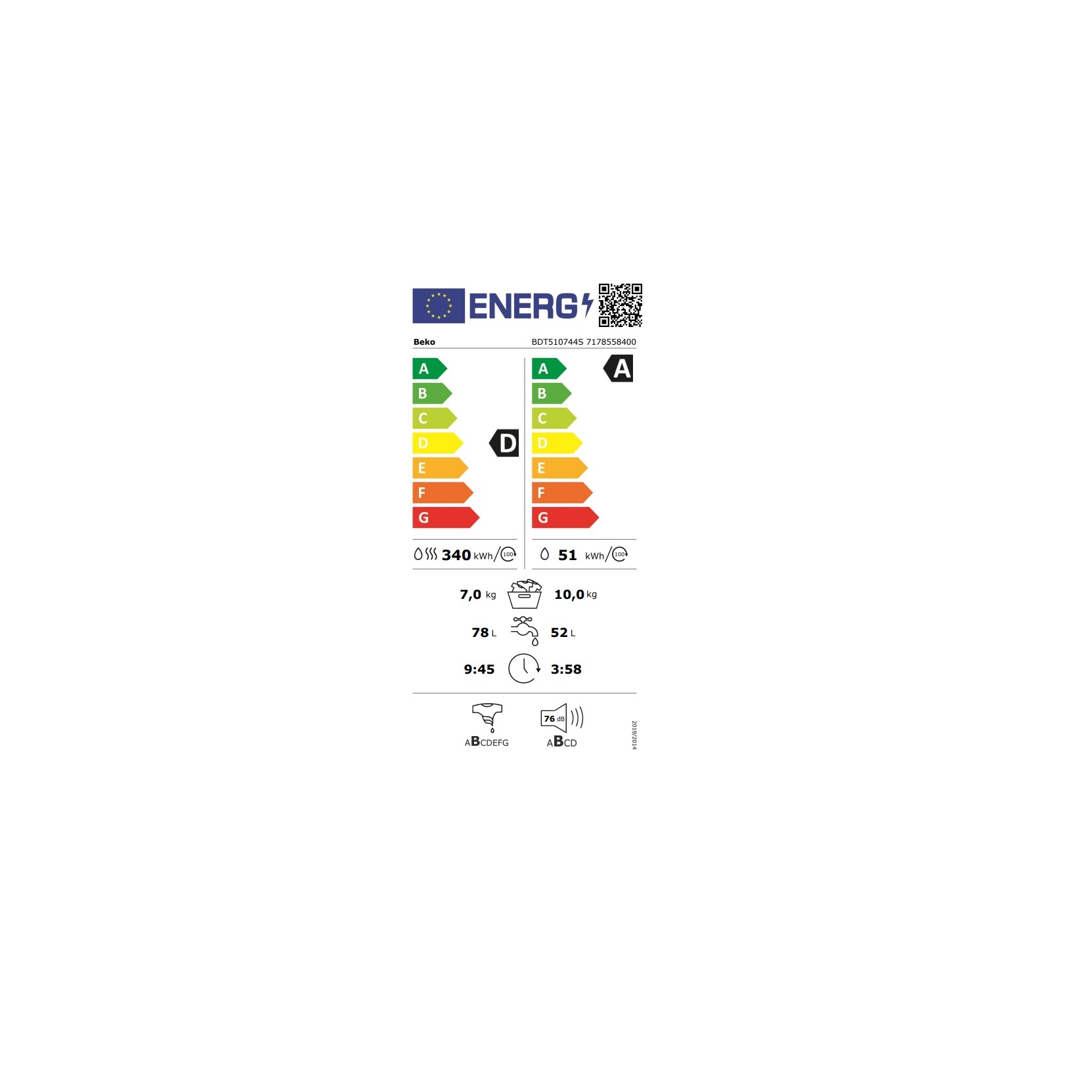 - Classe energetica (lavaggio + asciugatura)