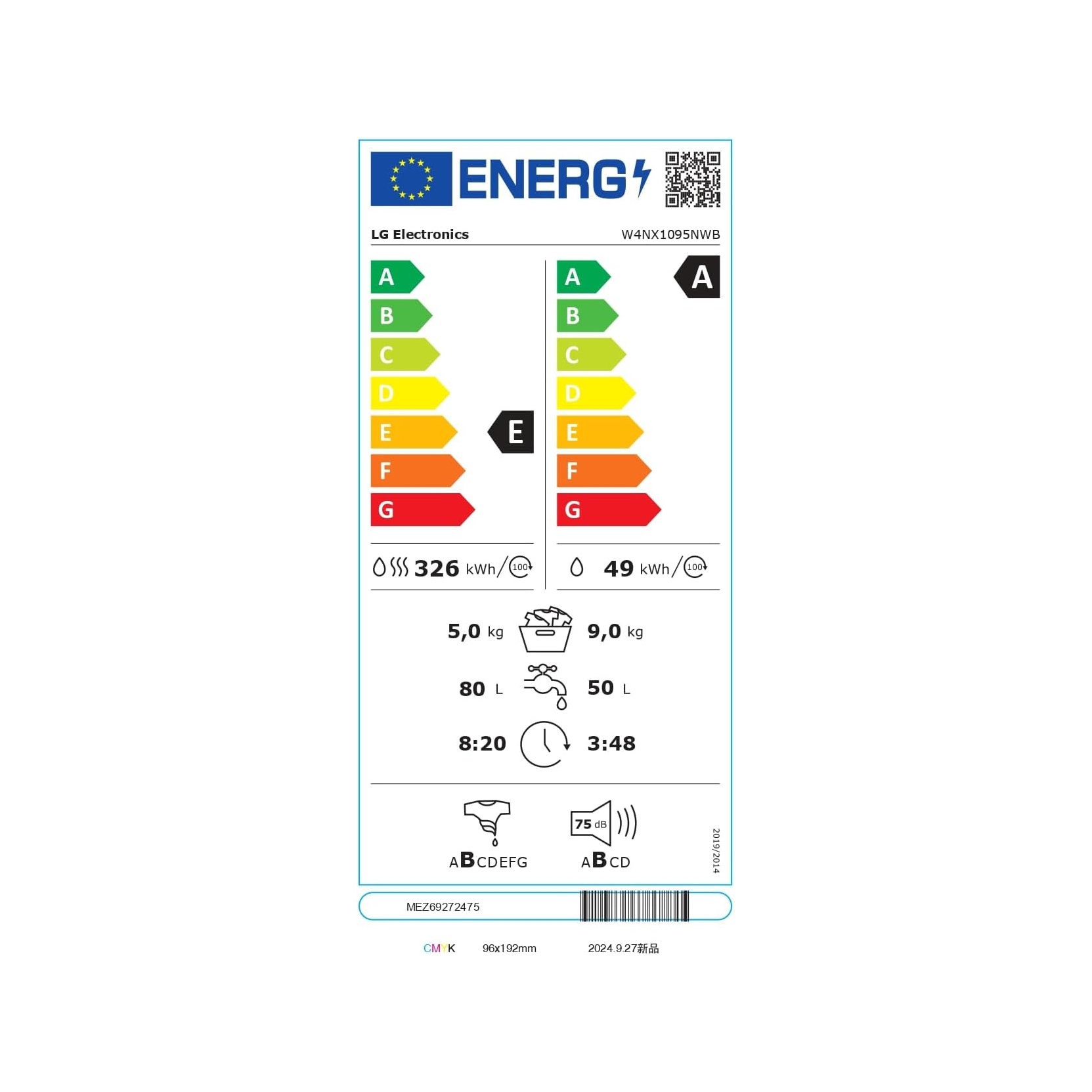 Lg W4NX1095NWB Lavasciuga 9/5 Kg Serie X1 1400 Giri Wi-Fi Classe A/E