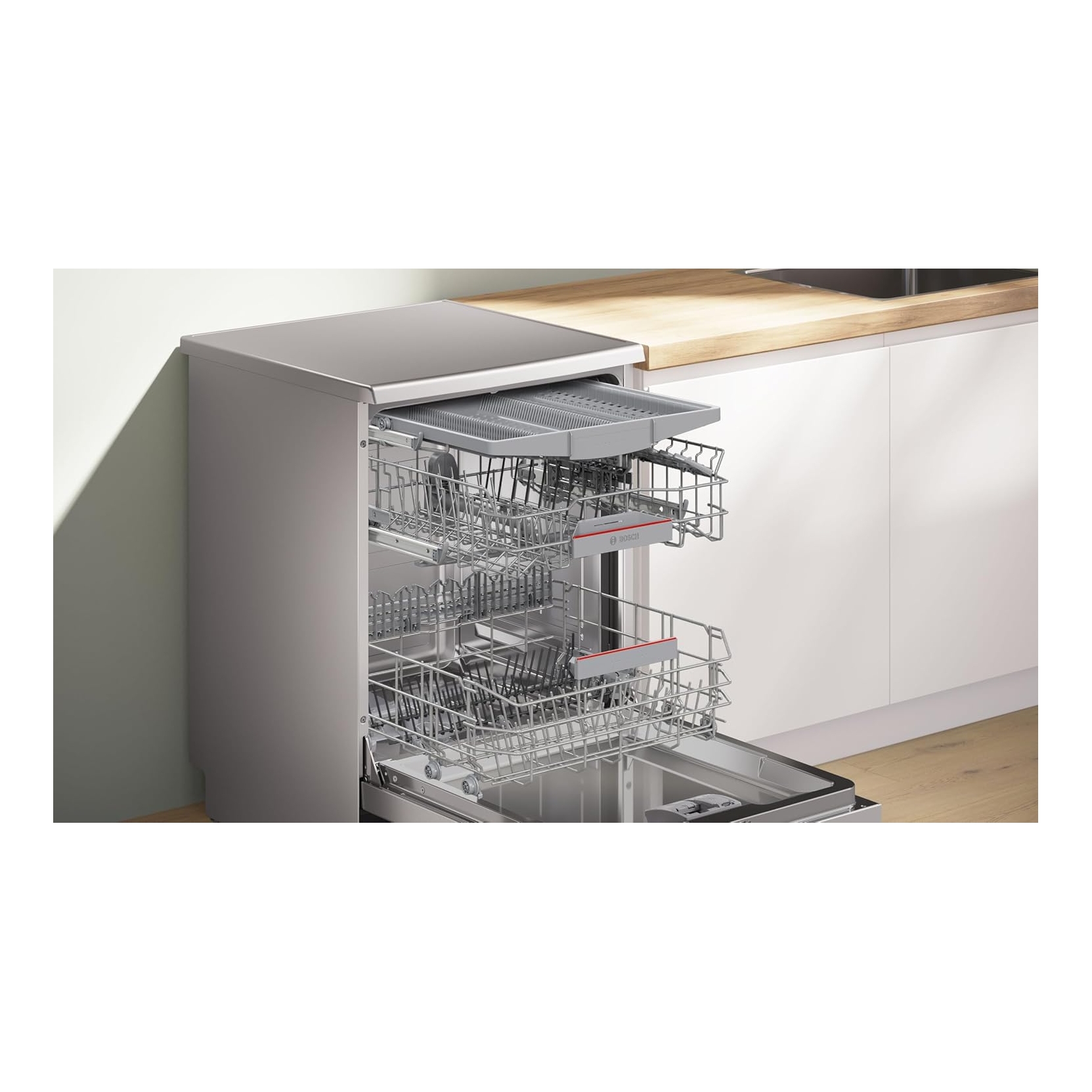 BOSCH SMS4ECI28E. Lavastoviglie a libera installazione - Serie 4 - Acciaio spazzolato anti-impronta - 14 coperti - Programmi: Eco, Auto 45-65°C, Intensivo, Express 60°, Silenzioso 50°, Preferito - Aquastop - Terzo cestello - Wifi - ZERO SPESE PAYPAL - SPEDIZIONE GRATUITA