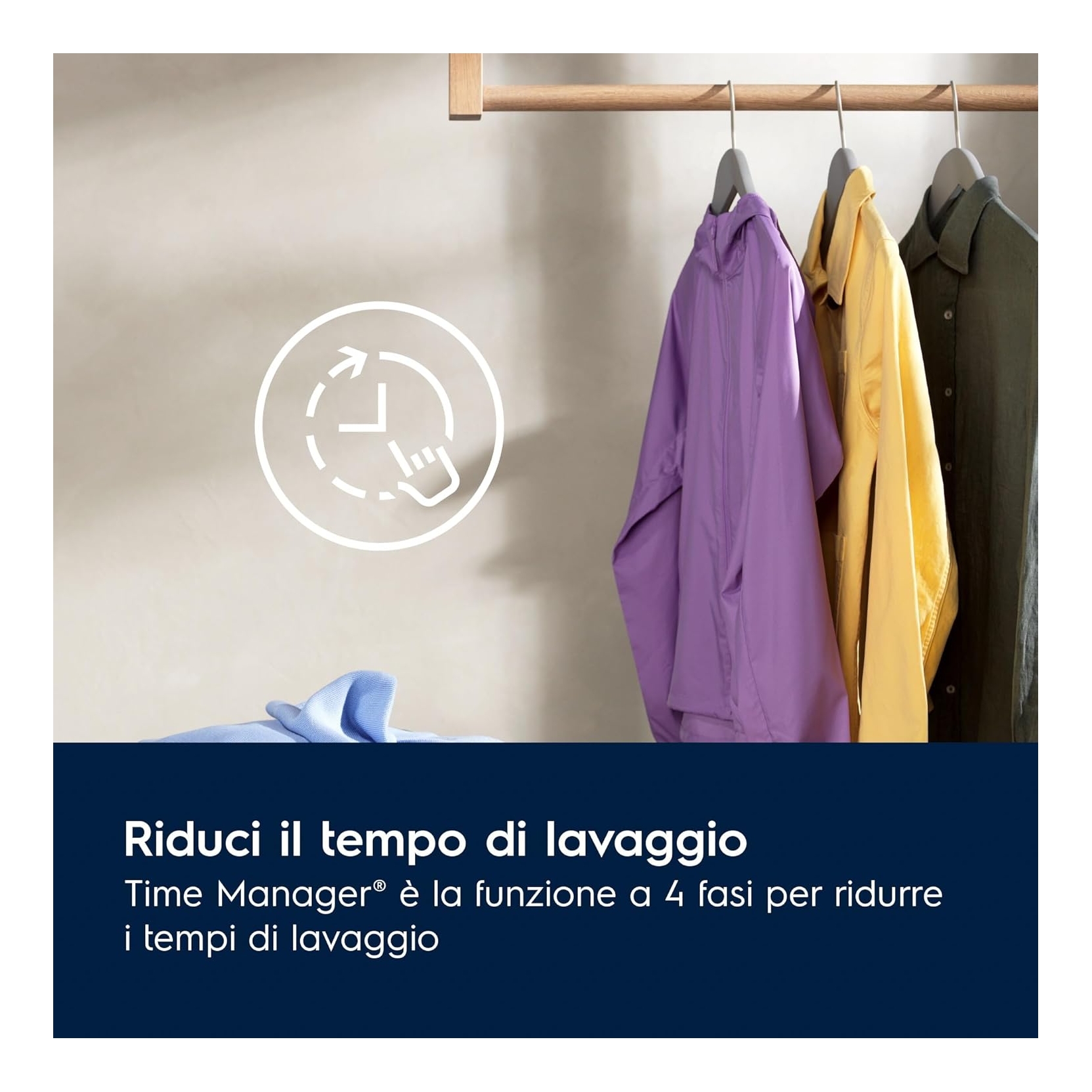 SensiCare è la tecnologia che rileva le dimensioni del carico e regola il programma per risparmiare fino al 30% di tempo, acqua ed energia. Questo garantisce un lavaggio preciso e su misura per ogni capo.
