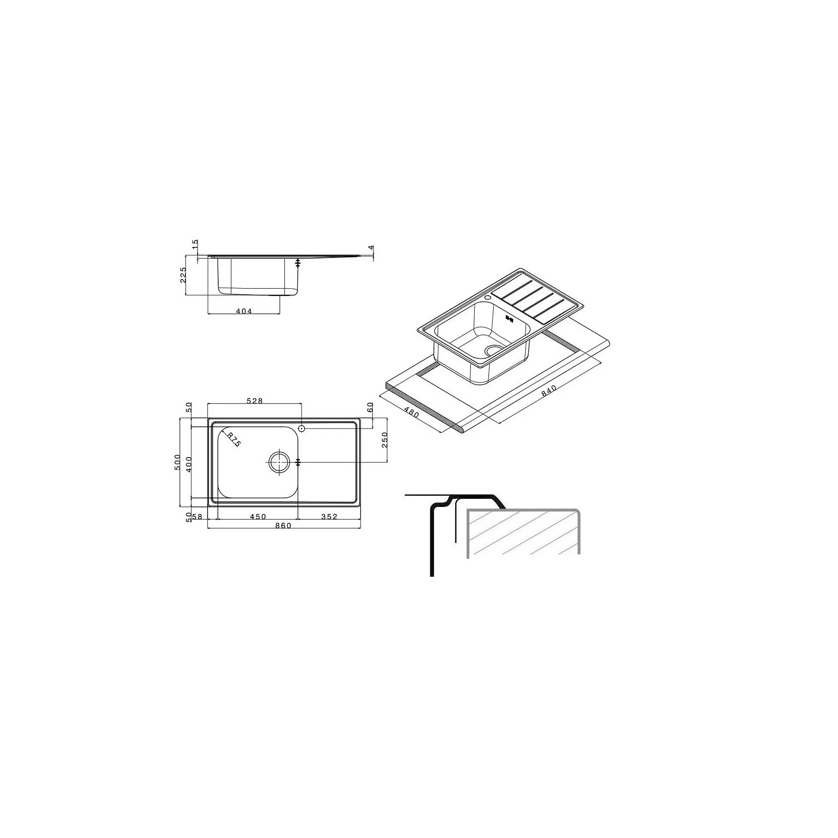 APELL LNG861IRBC. Lavello una vasca con gocciolatoio a destra - Inox Spazzolato: conferisce all’acciaio brillantezza e facilità di pulizia - Dimensione: 860x500 mm - Profondità: 225 mm - Foro scarico: 3,5" - Foro incasso: 840x480 mm - Base: 600 mm - ZERO SPESE PAYPAL - SPEDIZIONE GRATUITA