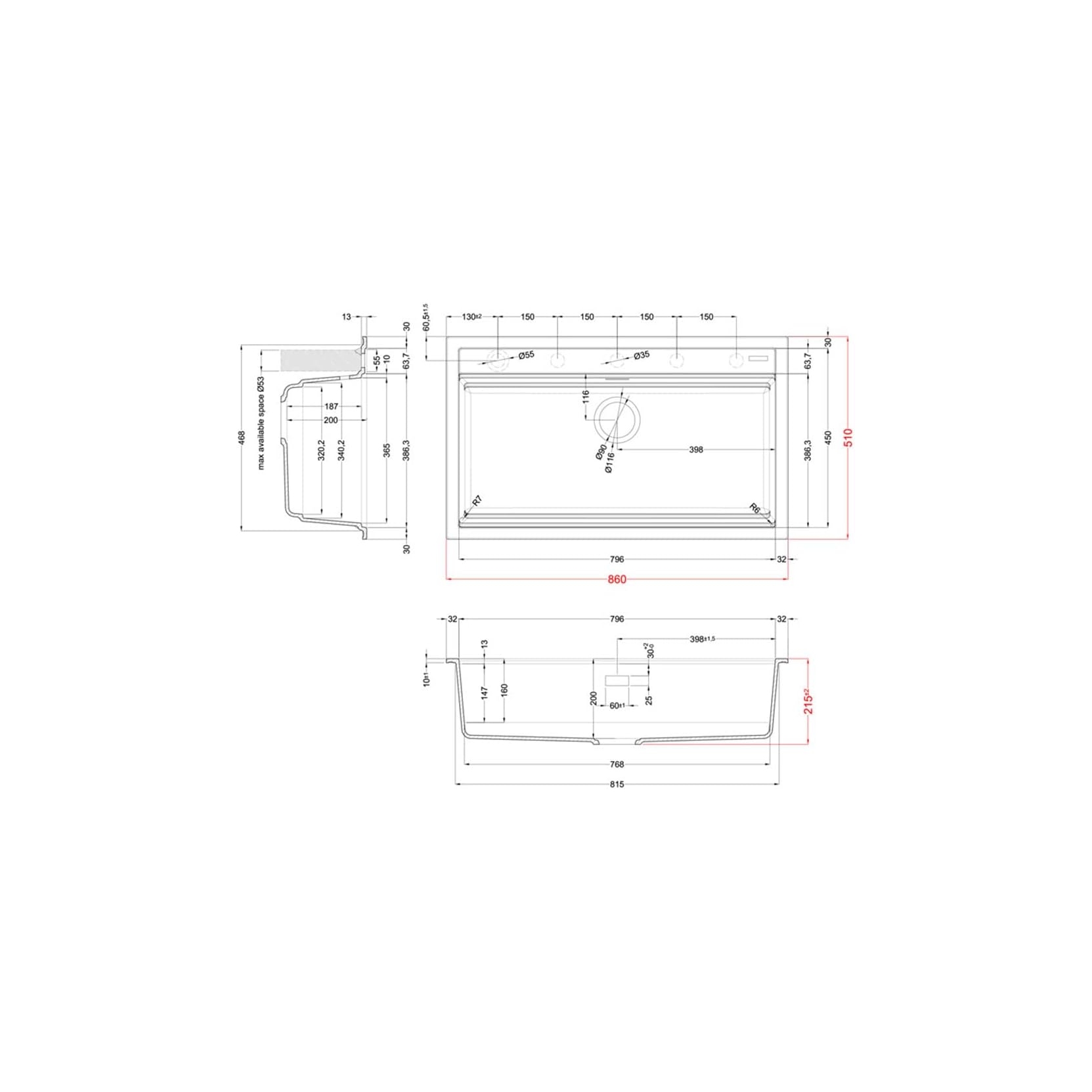 ELLECI LGB36051. Lavello Rettangolare - Monovasca - Materiale del lavandino: Granitek - Larghezza: 86 cm - Profondità: 51 cm - Base 90 cm - ZERO SPESE PAYPAL - SPEDIZIONE GRATUITA