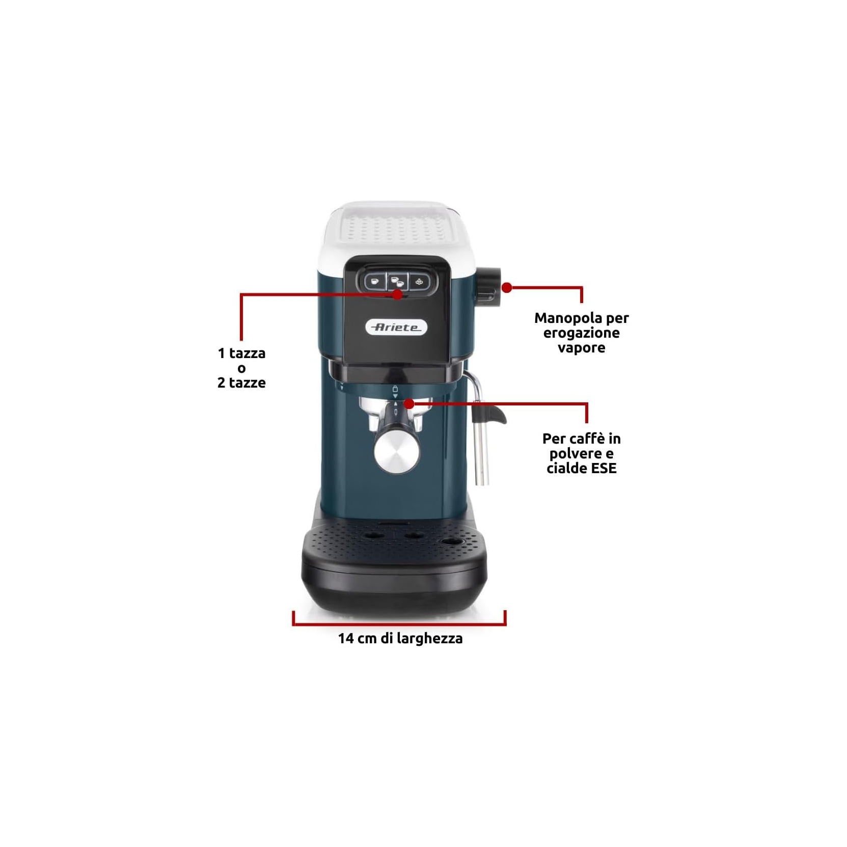 ARIETE 1399. Macchina da caffè espresso - Caffè in polvere o cialde ESE - Potenza: 1300 W - Capacità serbatoio: 1,1Lt - 15 bar di pressione - 1 o 2 tazze - Cappuccinatore - ZERO SPESE PAYPAL - SPEDIZIONE GRATUITA