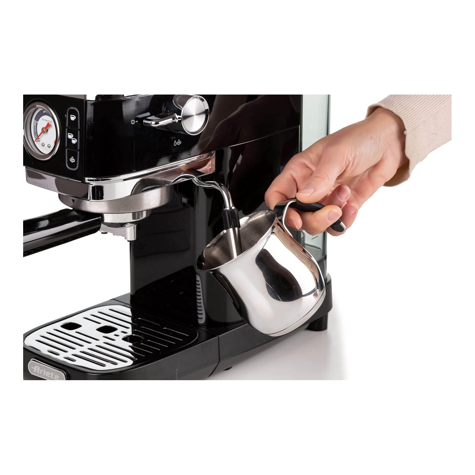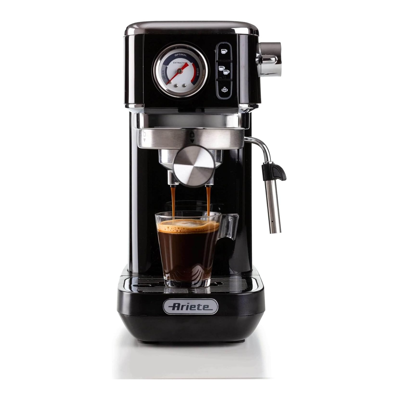ARIETE 1381NERO. Macchina da caffe espresso - Compatibile con caffè in polvere e cialde - Potenza: 1300 w - Personalizzazione lunghezza caffè - Erogazione acqua calda per tè e tisane - Dispositivo maxi cappuccino - Manometro integrato - Colore nero - ZERO SPESE PAYPAL - SPEDIZIONE GRATUITA