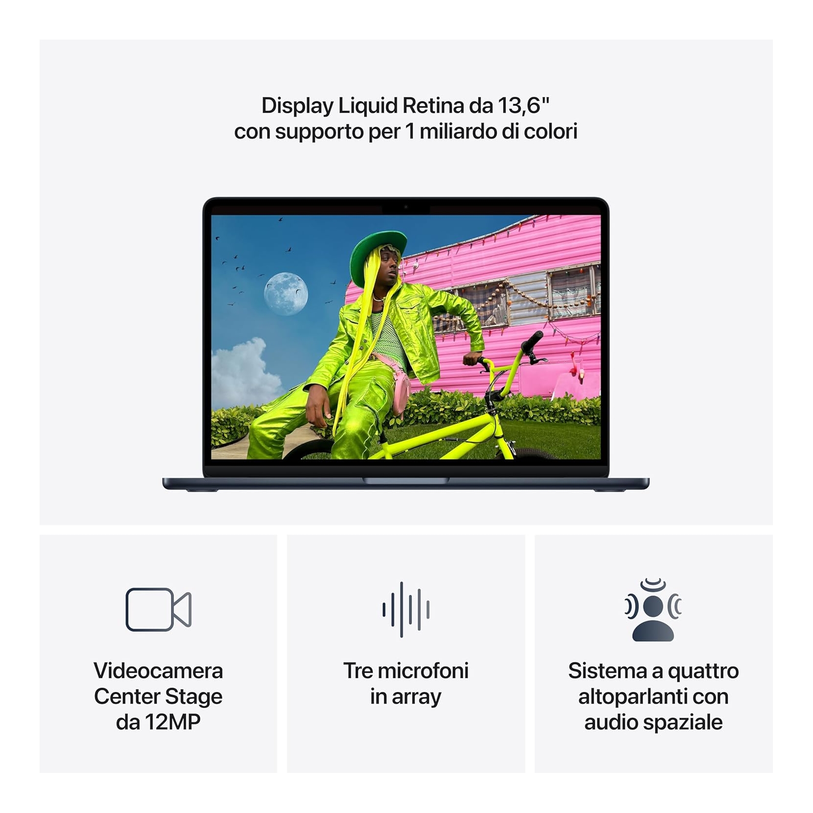 APPLE MC9E4T/A. MacBook Air - Chip M5 progettato per l’AI, display Liquid Retina da 13,6''- 16GB di memoria unificata - 512 GB di archiviazione SSD - Wi Fi 7 – Mezzanotte - ZERO SPESE PAYPAL - SPEDIZIONE GRATUITA