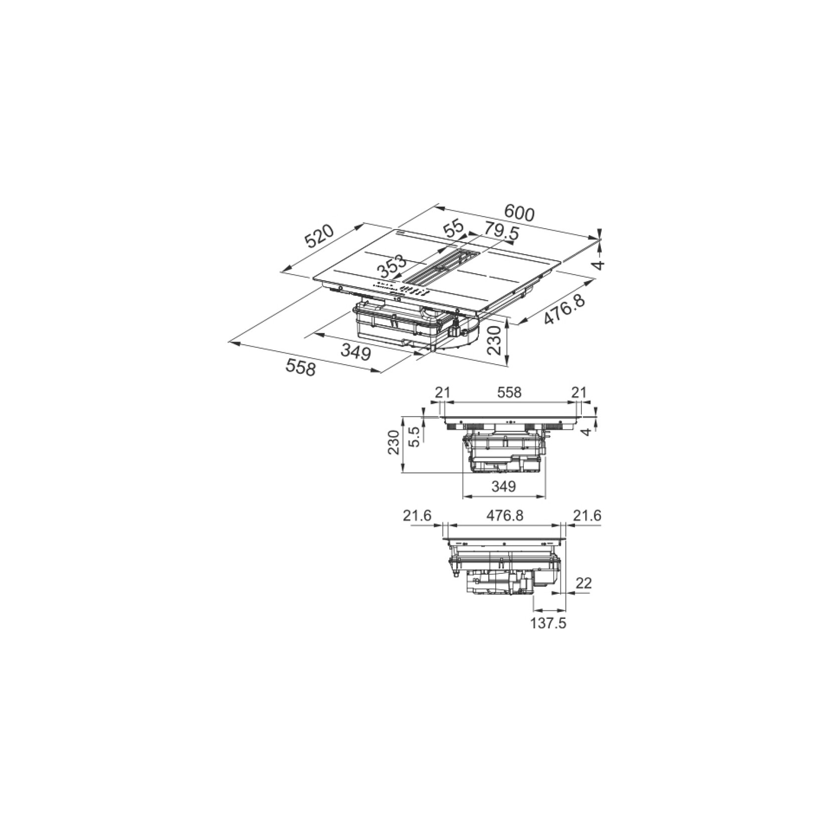 FABER 340.0708.974. Piano cottura a induzione 60 cm - Cappa integrata versione Filtrante - Comandi touch slider - 4 zone di cottura - Flexi Zone - Limitatore di potenza da: 2,8 / 3,5 / 4,5 / 7,4 - 2 zone bridge - 9 livelli di potenza - Timer - Funzione Booster - Cappa: 3 velocità + boost - Massima capacità d' aspirazione: 630 m3/h - Massima rumorosità: 72 dB(A) - ZERO SPESE PAYPAL - SPEDIZIONE GRATUITA