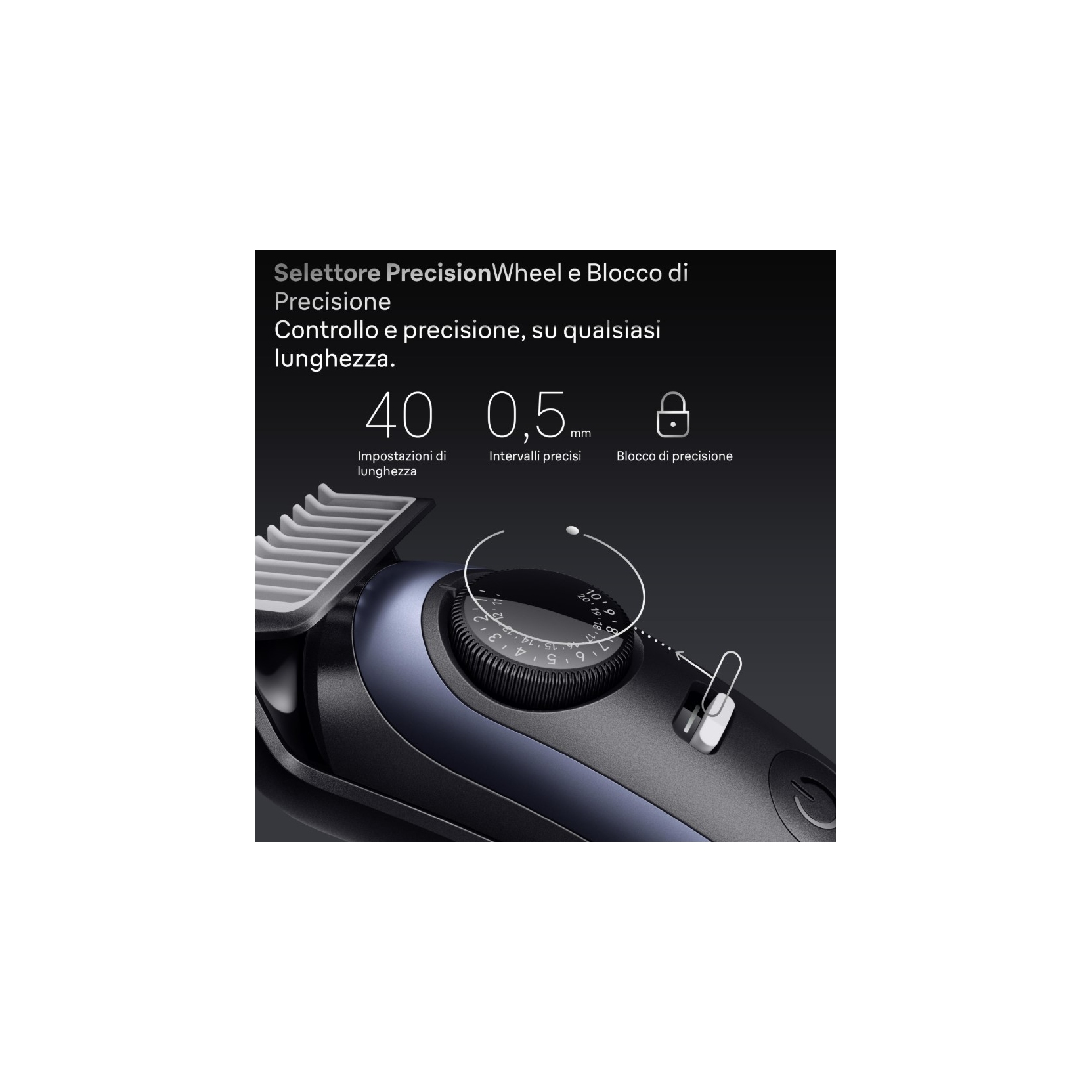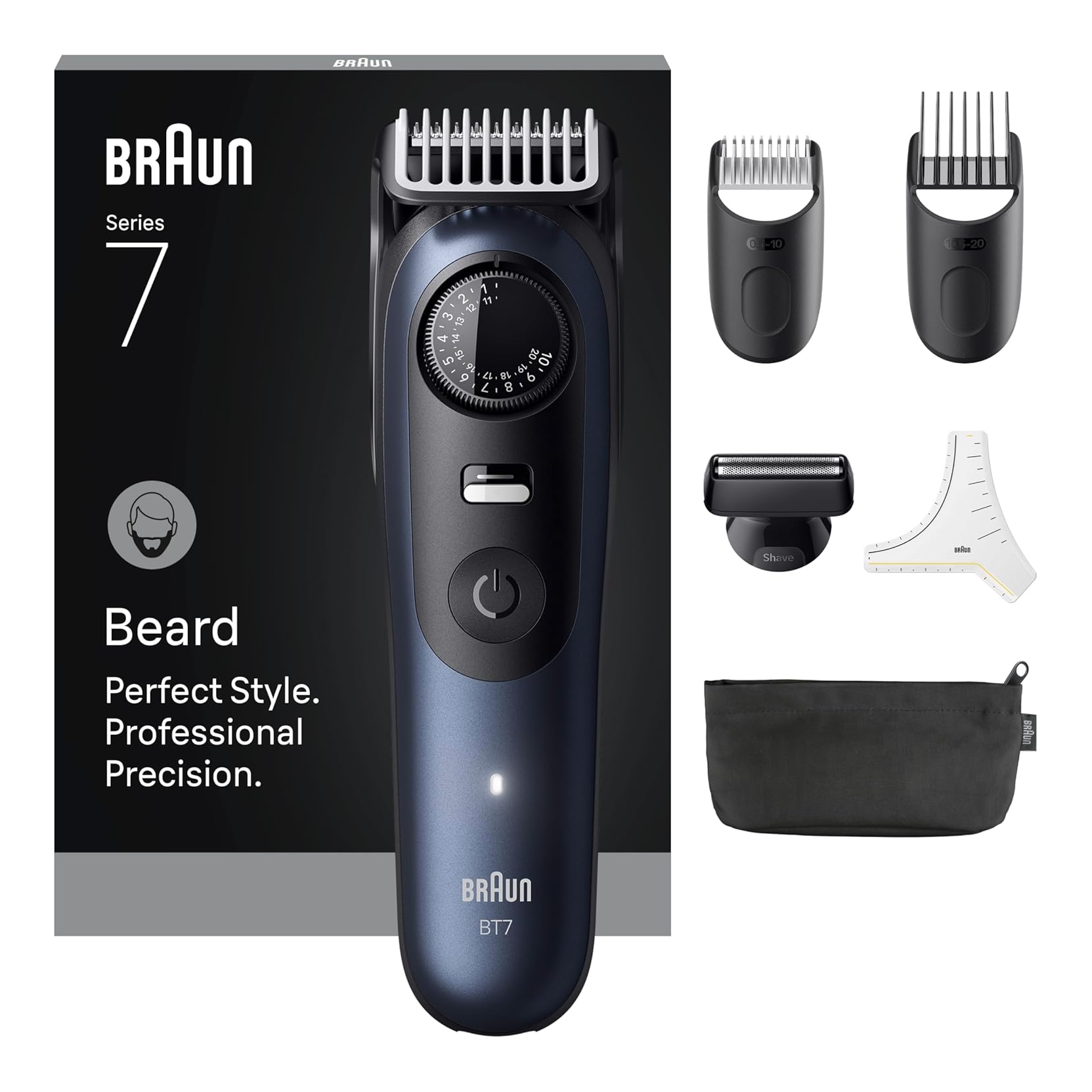 Il Regolabarba Serie 7 di Braun, progettato per precisione e perfezione professionali ad ogni passata. Con la lama Ultra Sharp ProBlade di lunga durata e la tecnologia AutoSense, questo regolabarba cattura anche i peli più ostinati. Niente più errori con PrecisionLock e controllo dello stile impeccabile con 40 impostazioni di lunghezza. Che tu regoli, rada, rifinisca o dettagli, questo regolabarba fornisce i migliori strumenti per linee perfette, sfumature e finiture.