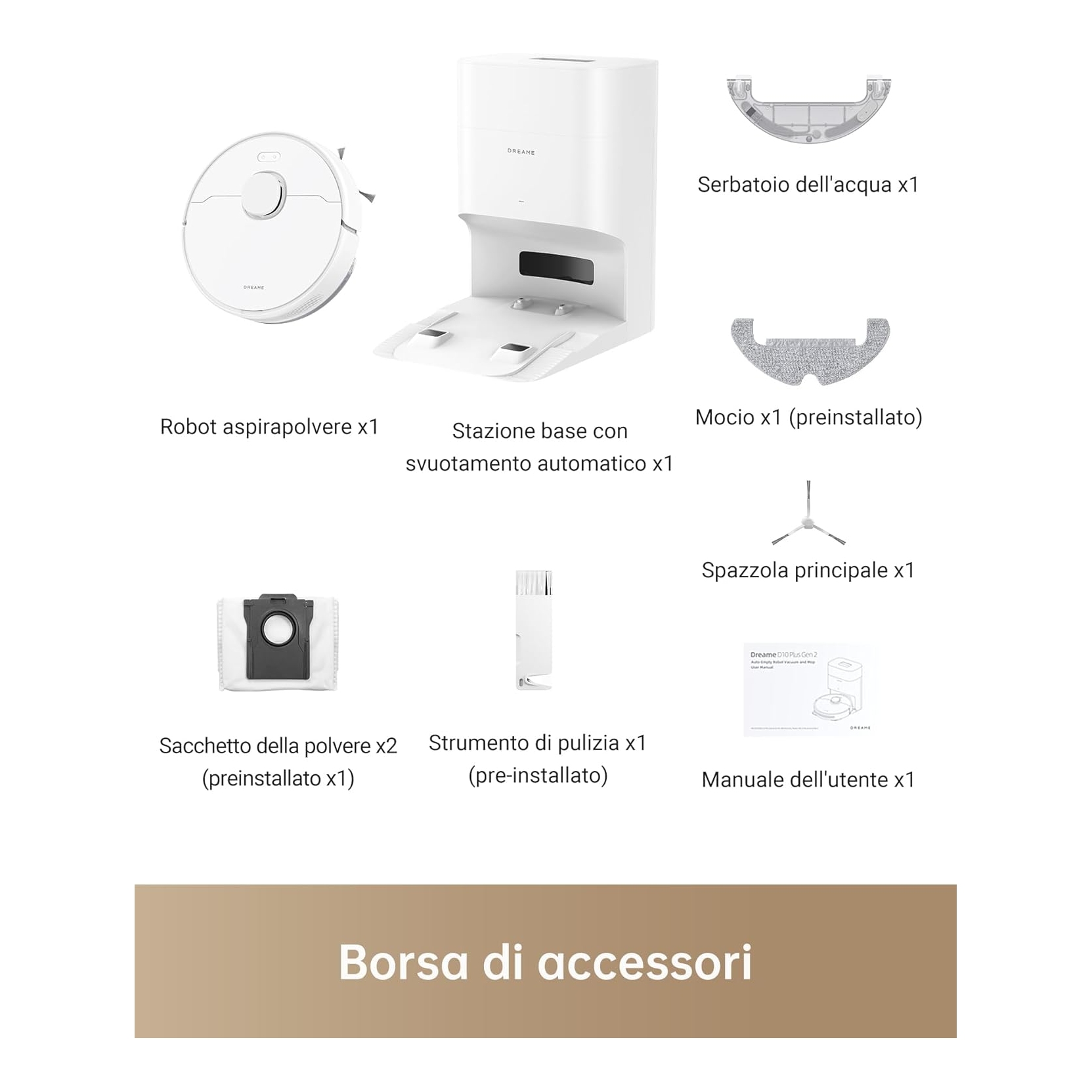 DREAME D10PLUS. Robot Aspirapolvere e lavapavimenti - 4 livelli regolabili di potenza di aspirazione - Raccolta della polvere automatica con sacchetto della polvere da 4 Lt - Capienza del serbatoio dell'acqua 150 mL - Capienza del contenitore della polvere 400 mL - Aspirazione Vormax™ a 6.000 Pa - Spazzola flessibile in gomma 2 in 1 - Rilevamento accurato degli ostacoli - Batteria da 5.200 mAh - ZERO SPESE PAYPAL - SPEDIZIONE GRATUITA