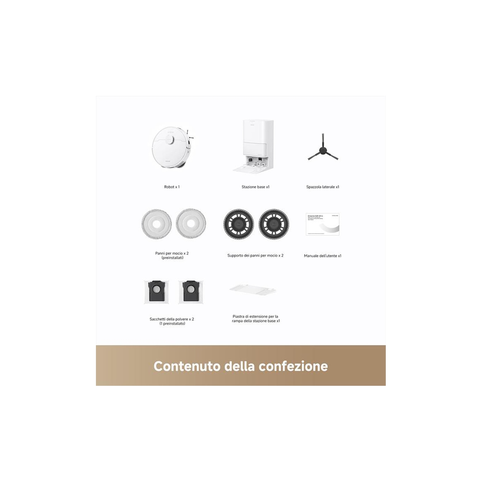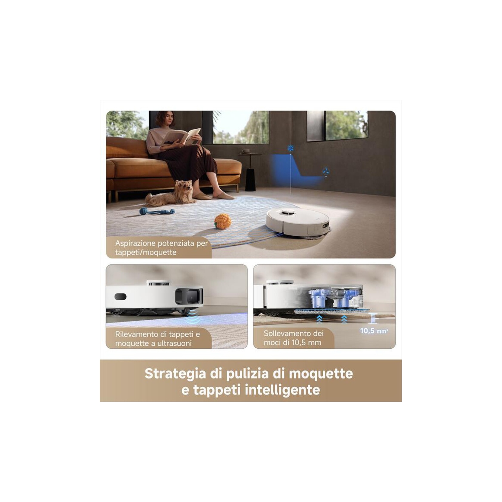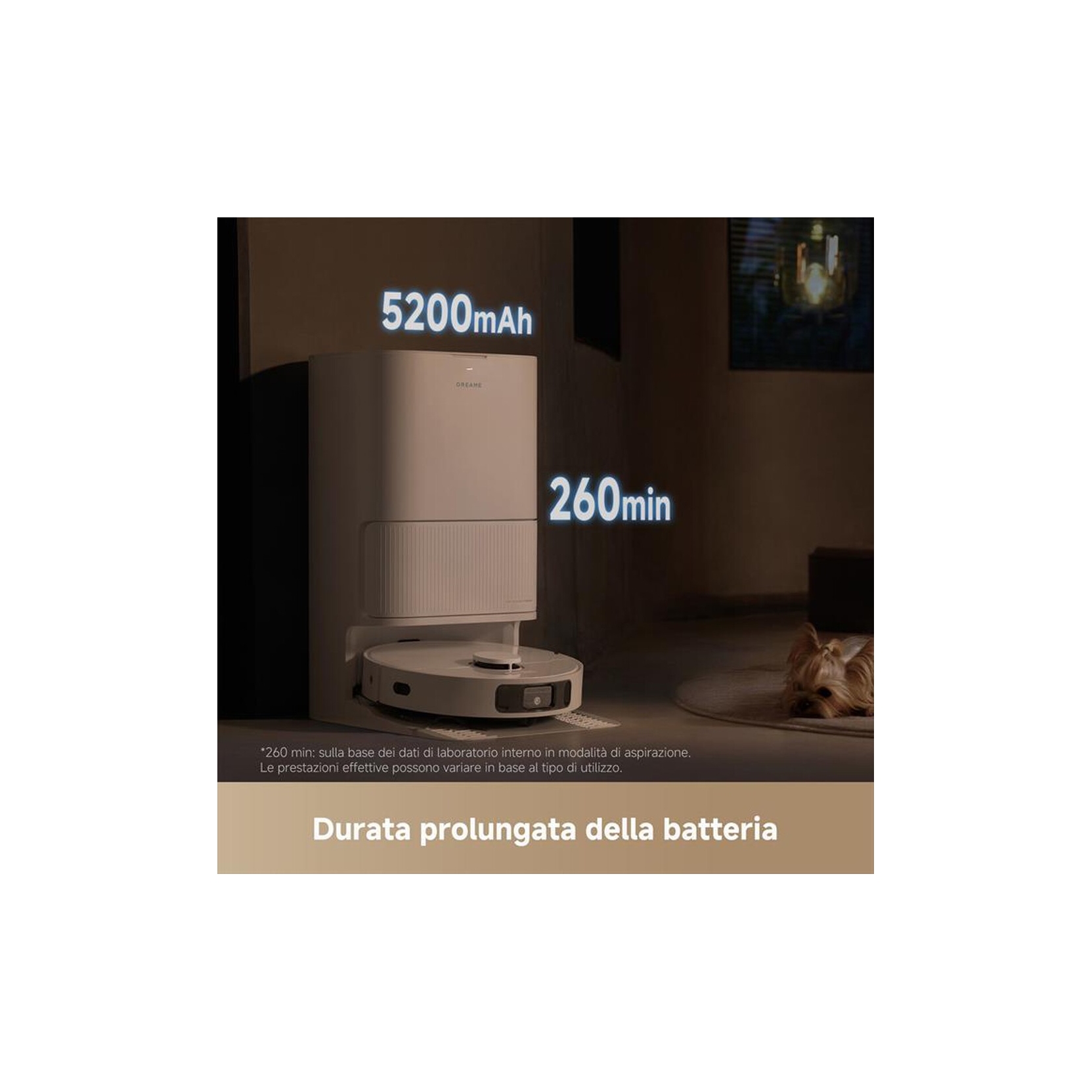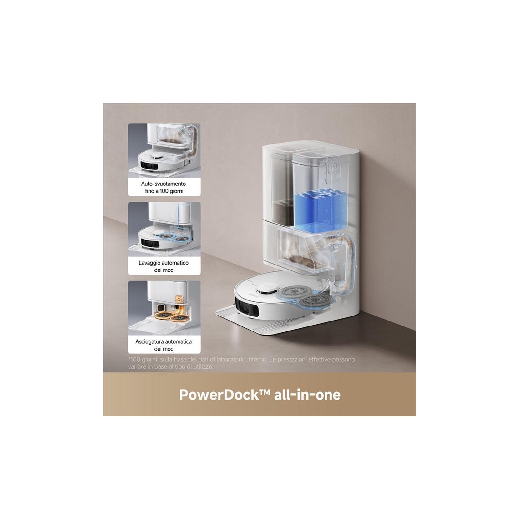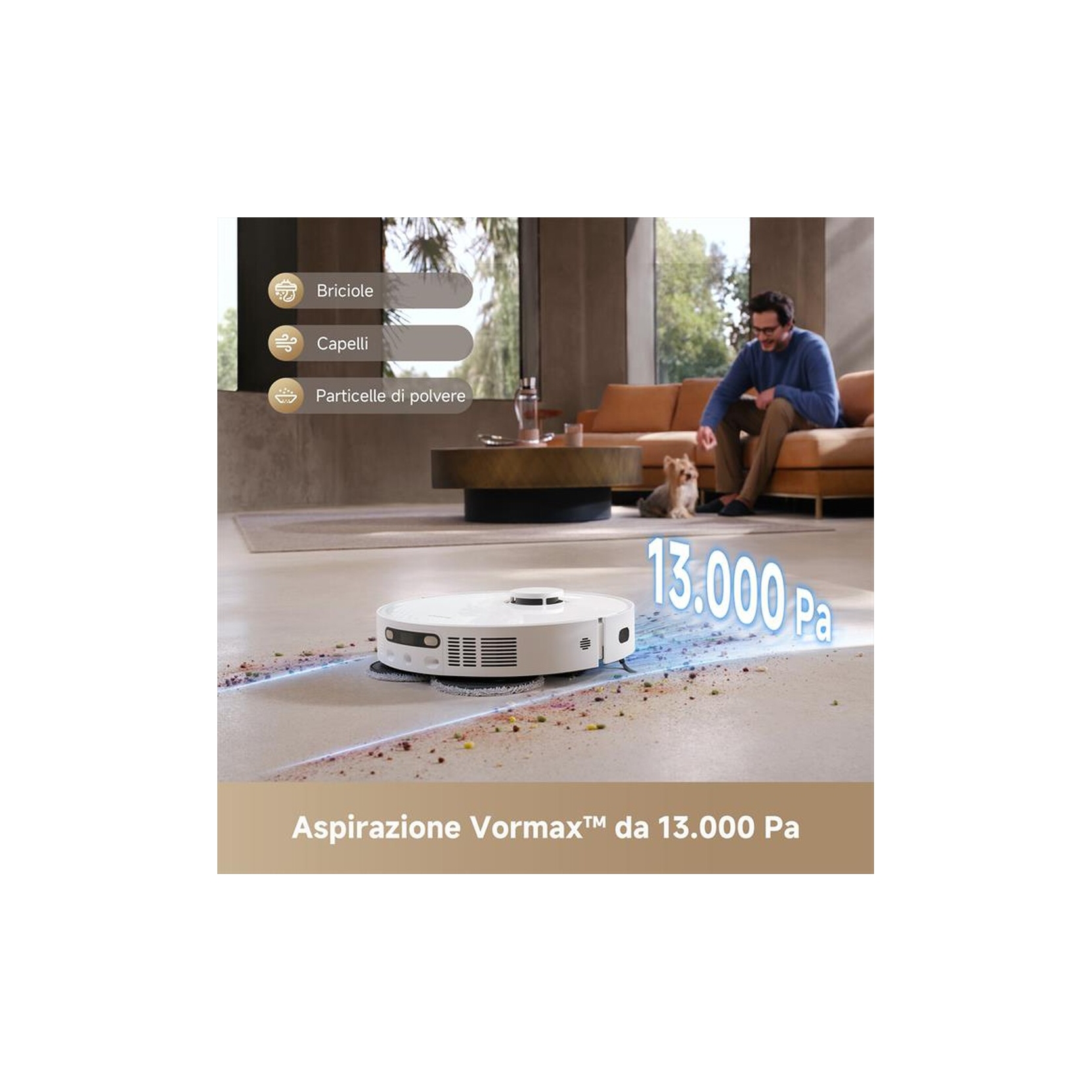 DREAME D20ULTRA. Robot aspirapolvere e lavapavimenti - Potenza di aspirazione di 13.000Pa - DuoScrub™ Mopping System - Tecnologia RoboSwing - Grazie alla stazione base All-in-One PowerDock™, D20VIM Ultra svuota automaticamente il serbatoio della polvere, lava e asciuga i mop con aria calda, regalandoti fino a 100 giorni di pulizia senza pensieri - Dotato di Smart Pathfinder™ e 3DAdapt™, naviga con precisione ed evita ostacoli, mentre il sistema di rilevamento ultrasonico dei tappeti alza i mop di 10,5mm per proteggerli dall’umidità - Con una batteria da 5.200mAh e ricarica più rapida del 30%, garantisce sessioni fino a 260 minuti di pulizia continua - ZERO SPESE PAYPAL - SPEDIZIONE GRATUITA