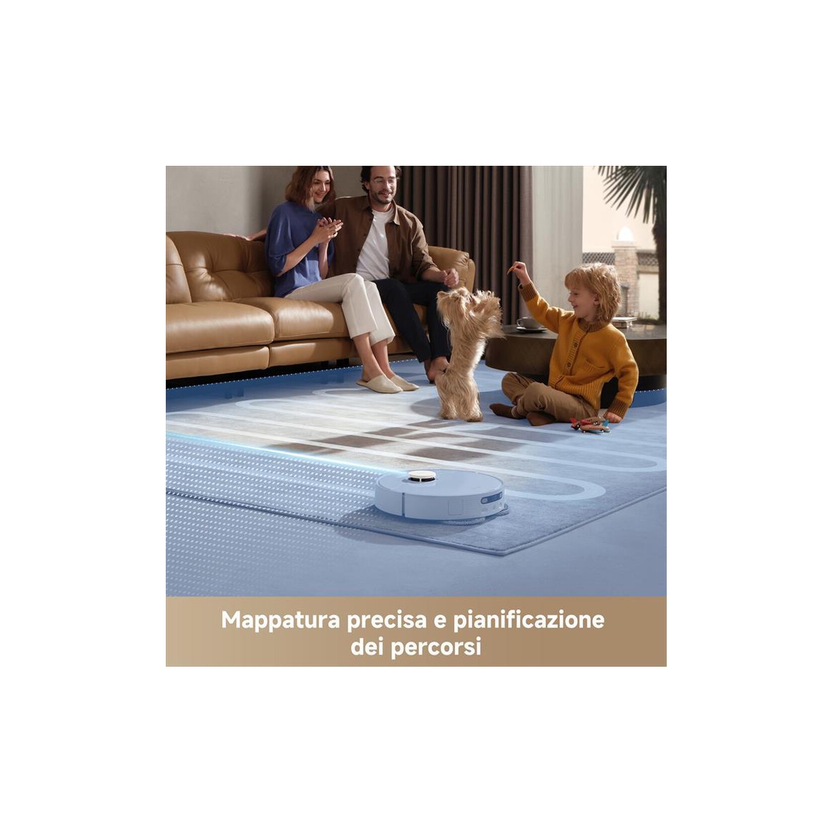Scopri Dreame D20VIM Ultra, il robot aspirapolvere e lavapavimenti che ridefinisce la pulizia domestica. Con una potenza di aspirazione di 13.000Pa, il rivoluzionario DuoScrub™ Mopping System e la tecnologia RoboSwing, questo dispositivo affronta sporco, macchie e polvere negli angoli più difficili. Grazie alla stazione base All-in-One PowerDock™, D20VIM Ultra svuota automaticamente il serbatoio della polvere, lava e asciuga i mop con aria calda, regalandoti fino a 100 giorni di pulizia senza pensieri. Dotato di Smart Pathfinder™ e 3DAdapt™, naviga con precisione ed evita ostacoli, mentre il sistema di rilevamento ultrasonico dei tappeti alza i mop di 10,5mm per proteggerli dall’umidità. Con una batteria da 5.200mAh e ricarica più rapida del 30%, garantisce sessioni fino a 260 minuti di pulizia continua. Con Dreame D20VIM Ultra, la tua casa non sarà mai stata così splendente, fresca e accogliente.
