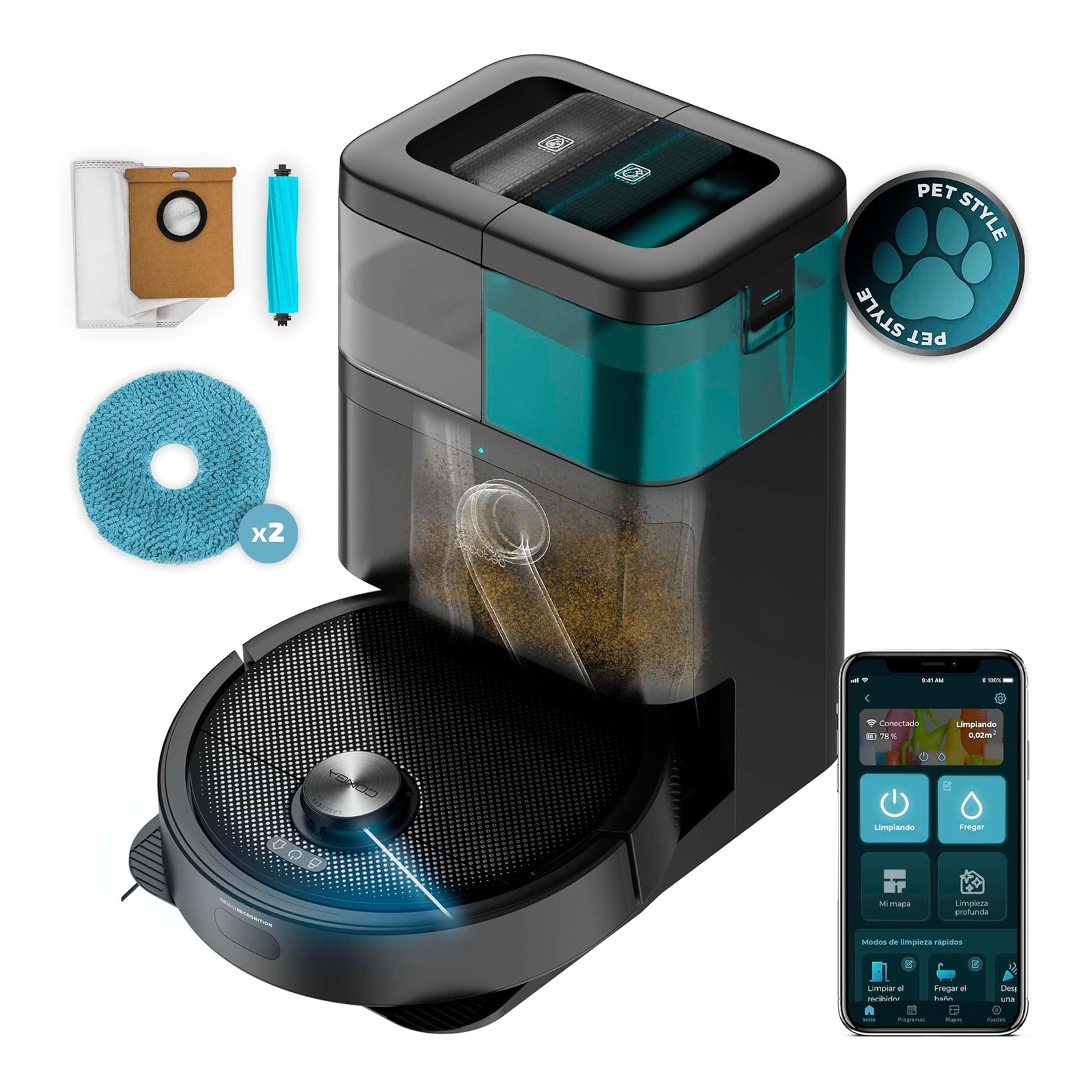 CECOTEC CONGA15090SPINARM. Robot aspira e lava - Tecnologia di navigazione laser - Autosvuotamento con serbatoi della polvere e dell'acqua, pulizia e asciugatura del mocio - Spazzola in silicone - Lavapavimenti girevoli e sollevabili Spazzola laterale - Motore di aspirazione da 8000 Pa - Controllo via app e assistenti virtuali - ZERO SPESE PAYPAL - SPEDIZIONE GRATUITA