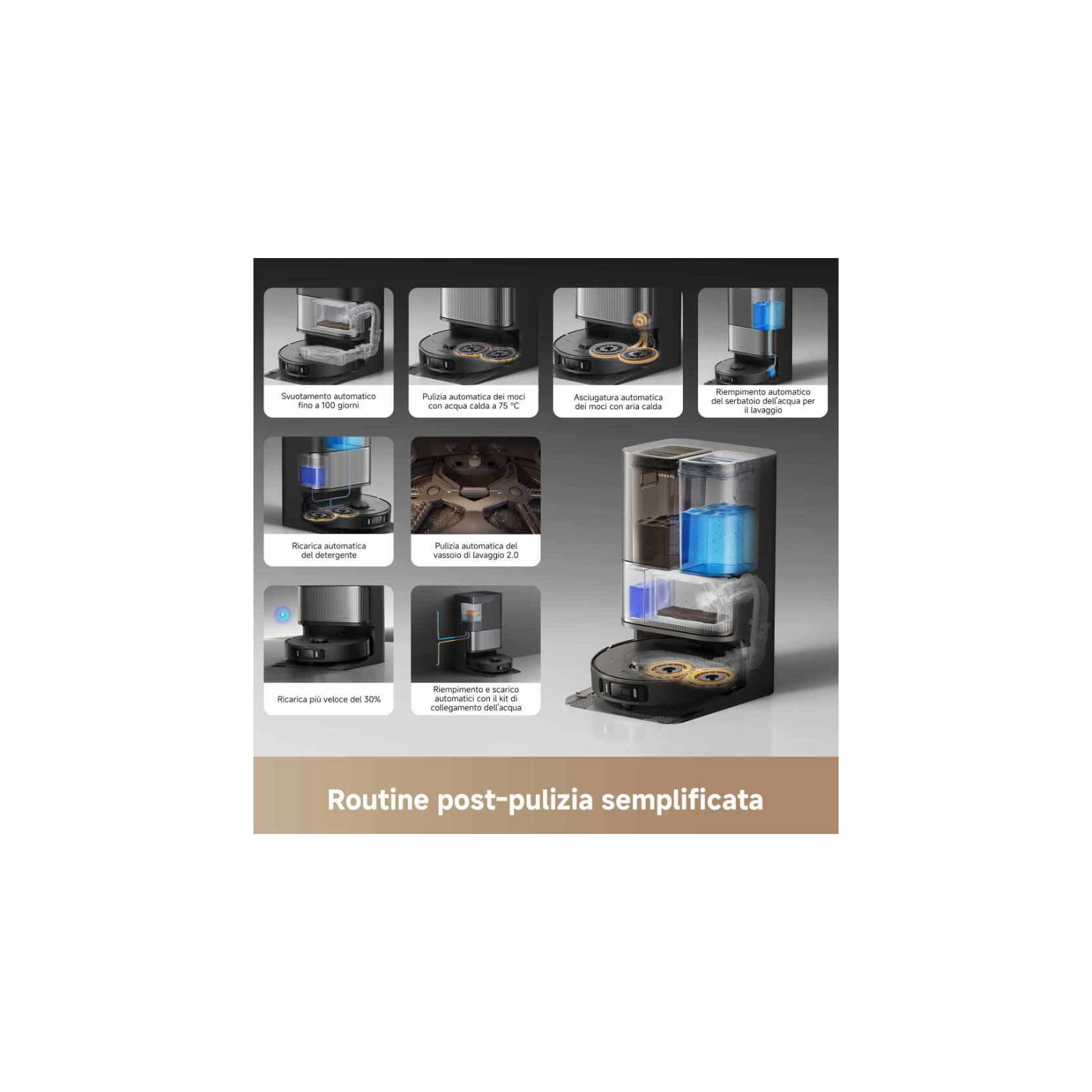 DREAME L40VIM ULTRA AE. Robot aspirapolvere e lavapavimenti - Potente aspirazione Vormax™ fino a 19.000Pa - Tecnologia MopExtend™ RoboSwing - Mop estensibile per pulizia angoli e bordi - Rilevamento ostacoli intelligente - 3DAdapt™ con luce strutturata + AI - Riconoscimento di oltre 120 oggetti - Dock multifunzione PowerDock™ - Pulizia automatica del mop con acqua a 75°C - Asciugatura ad aria calda - Ricarica rapida (+30%) - Auto-svuotamento e auto-rabbocco acqua/soluzione - Lavaggio con Washboard 2.0 autopulente - Pulizia intelligente dei tappeti - Riconoscimento ultrasonico - Sollevamento mop automatico (fino a 10,5 mm) - Controllo vocale tramite assistenti di terze parti - Gestione intelligente stanza per stanza via app Dreamehome - ZERO SPESE PAYPAL - SPEDIZIONE GRATUITA