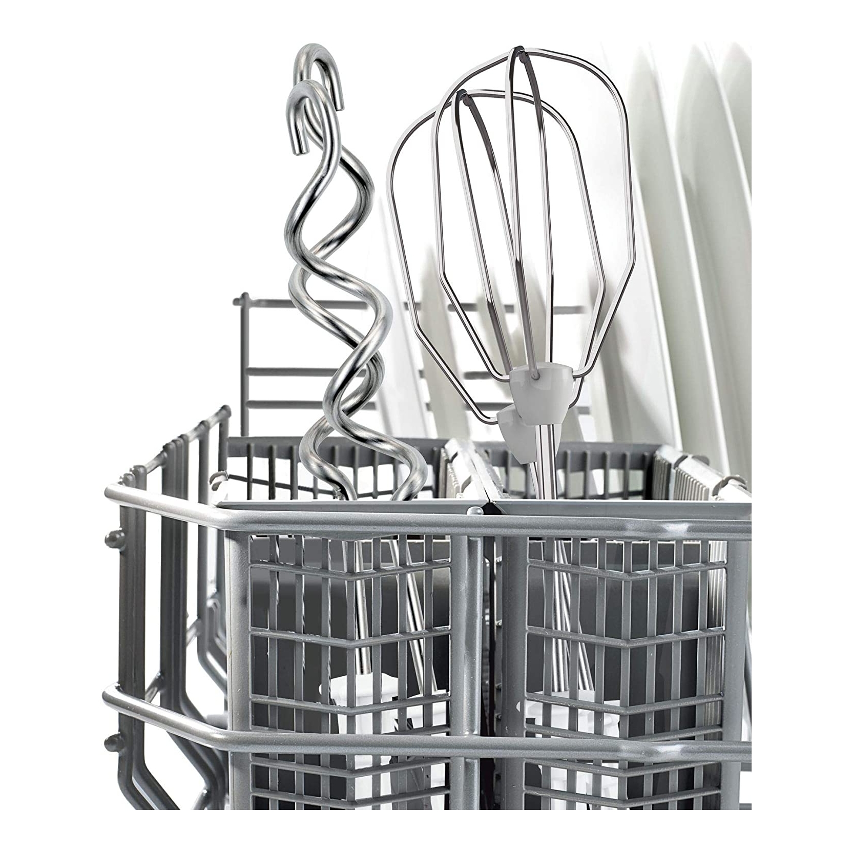 Le fruste in acciaio inossidabile funzionano in modo rapido ed efficiente, che si tratti di panna da montare, albumi o impasti per torte e dessert. I robusti ganci per impastare sono ottimi per la lavorazione di ingredienti più difficili e rendendo la cucina un piacere.