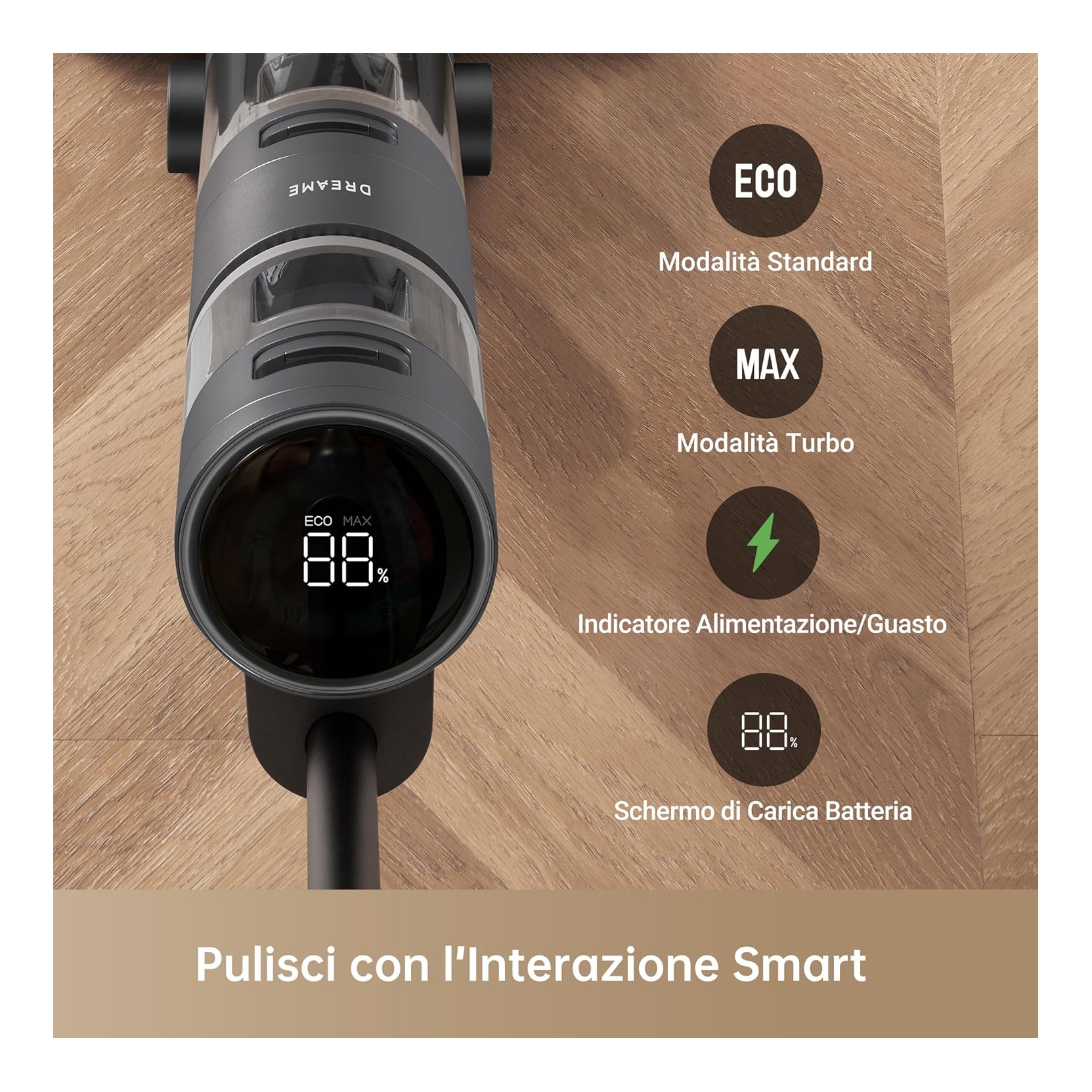 DREAME H11CORE. Scopa elettrica - Con tecnologia ciclonica - Potenza max 170 Watt - Ricaricabile - Regolazione elettronica - Con filtro HEPA - Con indicatore tanica piena - Con indicatore sacco pieno - Con funzione Wet & Dry - Con funzione Lava-asciuga - Con spazzola parquet - Con aspirabriciole - ZERO SPESE PAYPAL - SPEDIZIONE GRATUITA