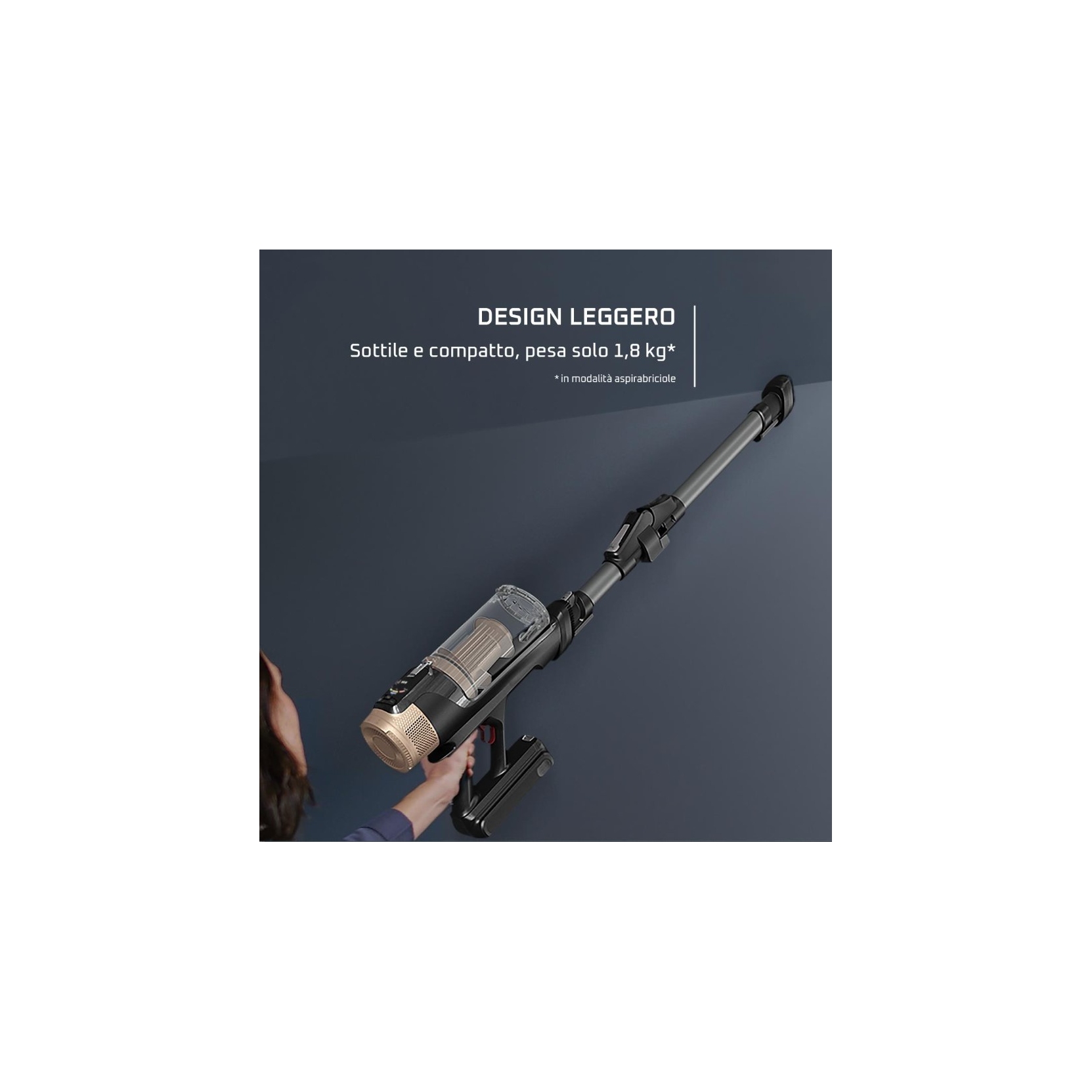- Leggera e maneggevole, perfetta per passaggi rapidi ma anche sessioni di pulizia più lunghe.