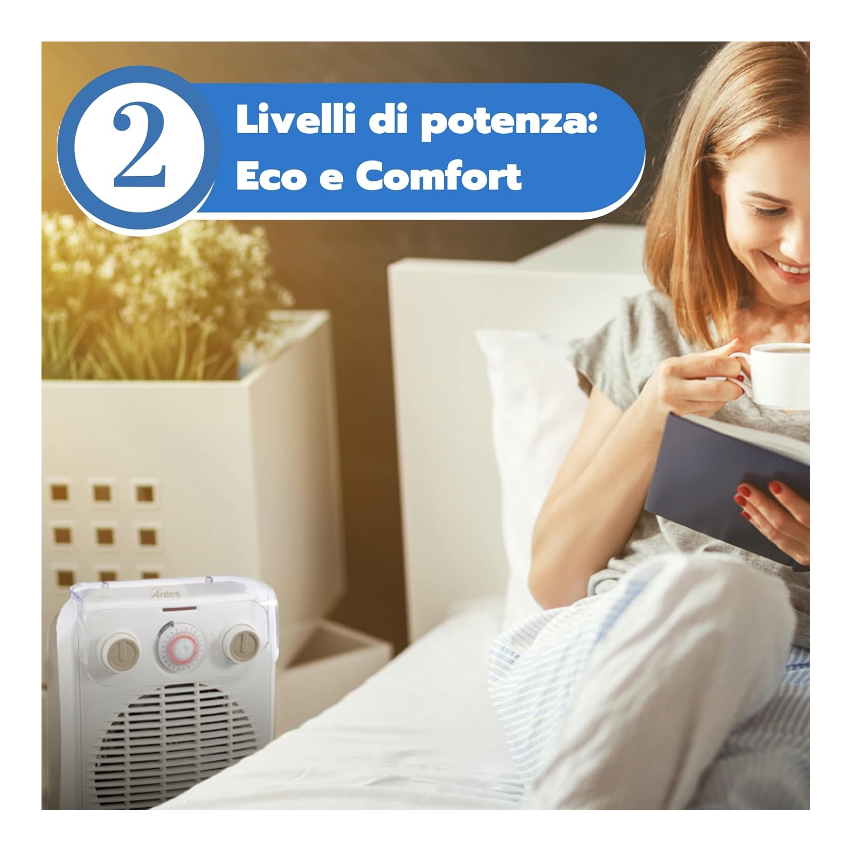 ARDES AR4F10TI. Termoventilatore - 2 livelli di potenza: eco e comfort - Ventilazione estiva - Termostato di regolazione della temperatura - Timer programmatore 24 ore - Grado di protezione dall’ingresso di liquidi IP21 -Spia di funzionamento - Sistema di protezione anti surriscaldamento - ZERO SPESE PAYPAL - SPEDIZIONE GRATUITA