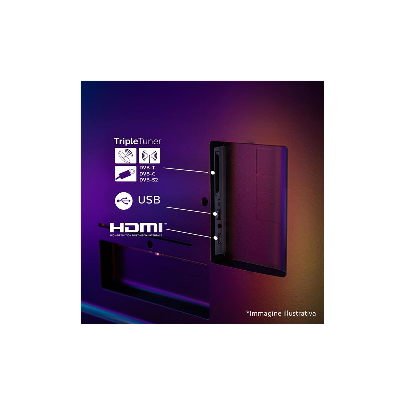 - Audio: 2 × altoparlanti full range 10 W + Dolby Atmos / DTS:X