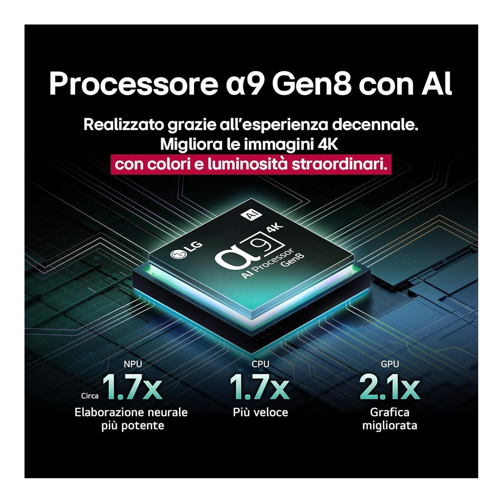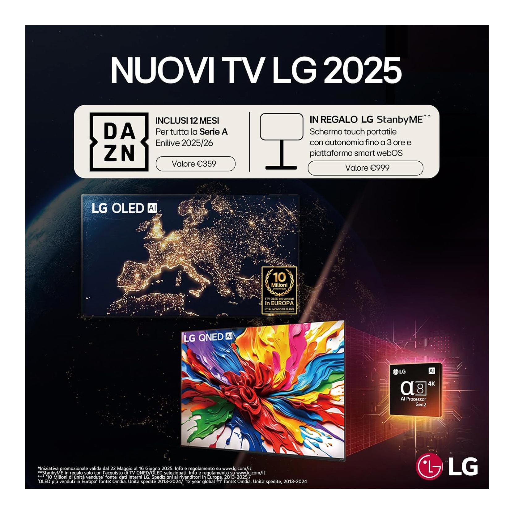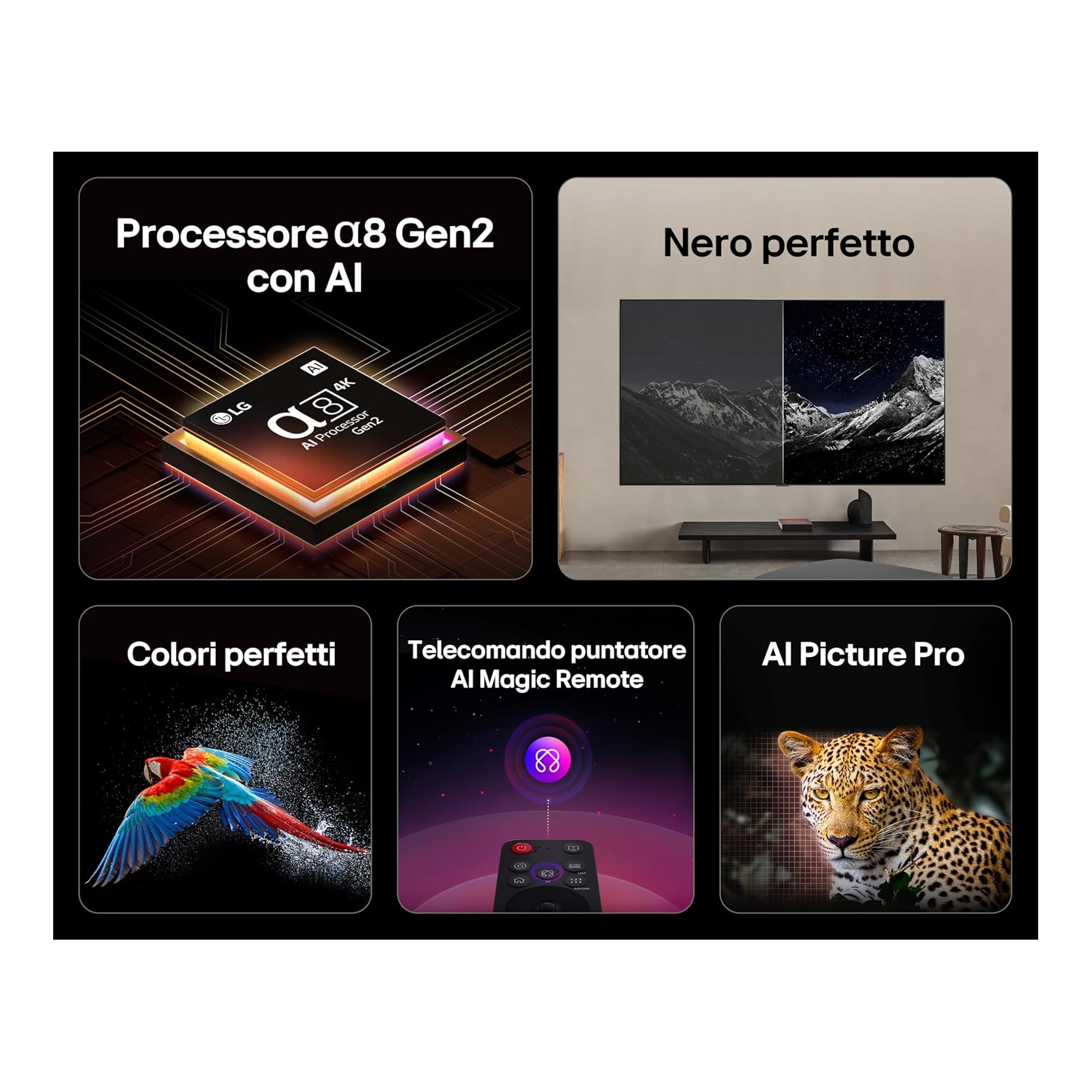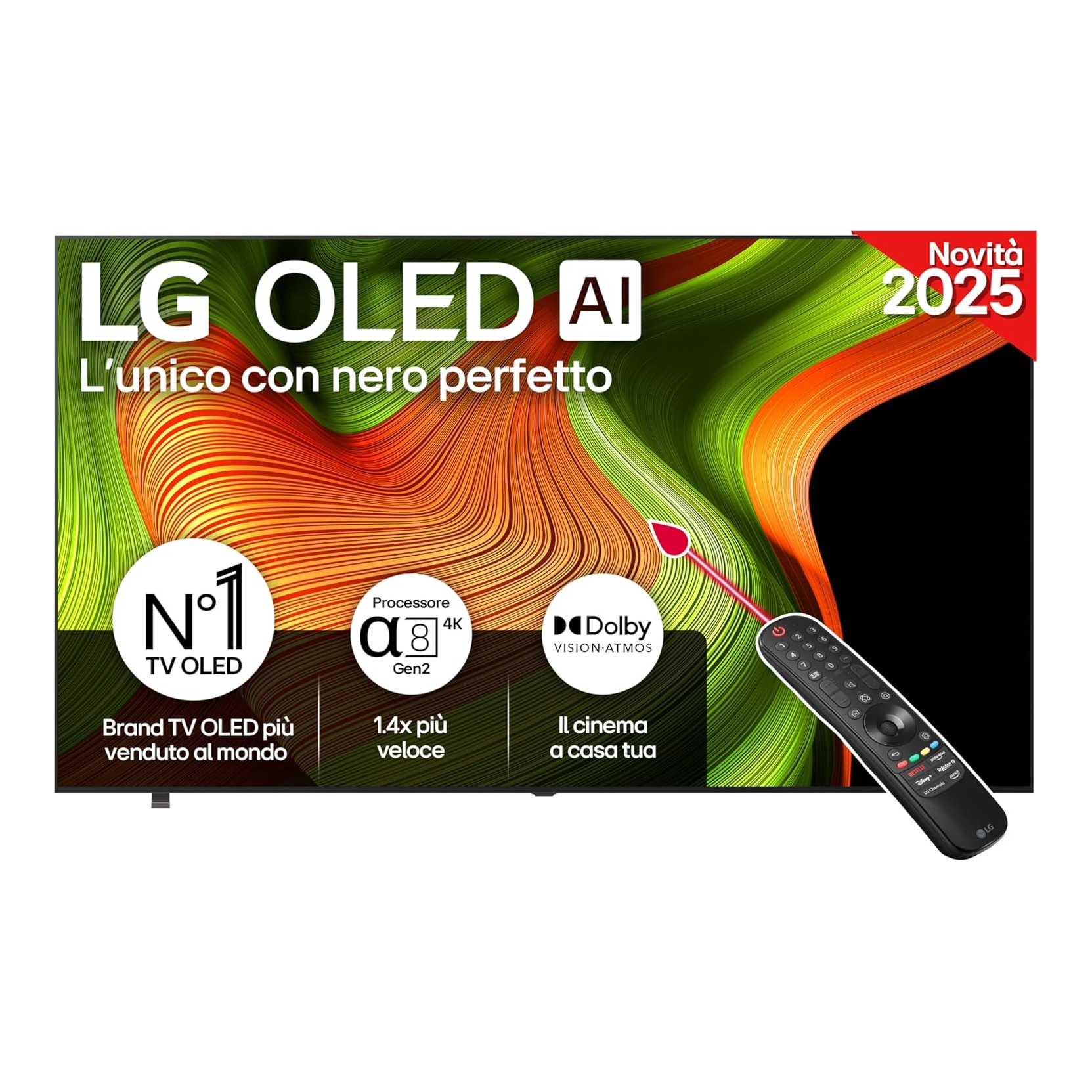 LG OLED83B56LA. TV oled 83 pollici - Smart TV 4K - Processore α8 Gen2 - WebOS con AI - Dolby Vision e Atmos - Gaming con VRR - Suono surround virtuale fino a 9.1.2 canali - TV con il nero perfetto - Colori perfetti: 100% - Volume Colore 100%- Questo TV è stato certificato da Intertek perché assicura una fedeltà cromatica al 100%, riproducendo colori realistici e autentici in ogni scenam, mantenendo intatti i dettagli originali - Telecomando Puntatore con AI - 4 porte compatibili HDMI 2.1 per giocare in 4K fino a 144fps sfruttando anche le tecnologie di refresh variabile VRR, NVIDIA G-Sync e AMD FreeSync Premium - ZERO SPESE PAYPAL - SPEDIZIONE GRATUITA