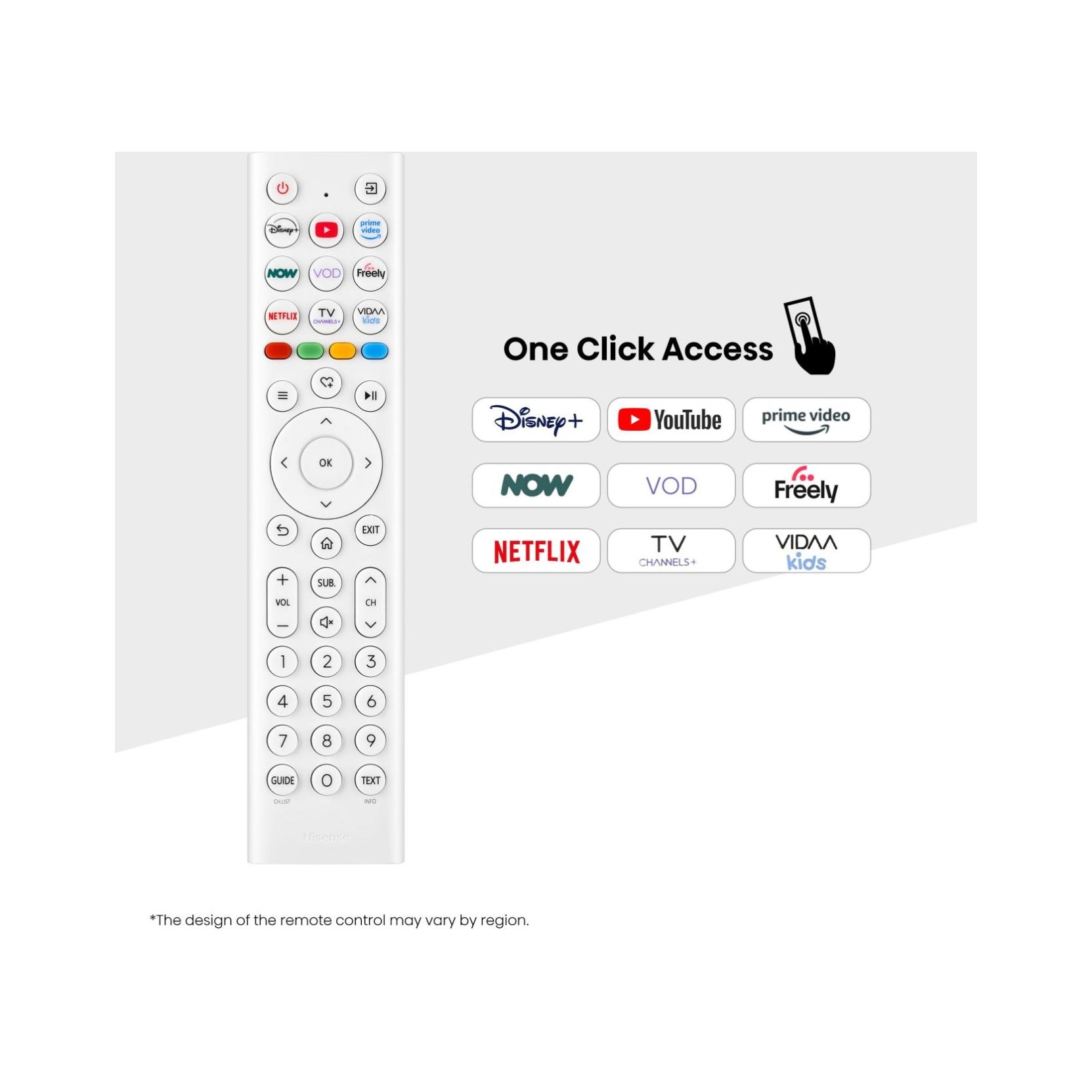 - Smart TV con sistema operativo VIDAA: accesso a Netflix, Prime Video, Disney+, YouTube e oltre 1.000 app.