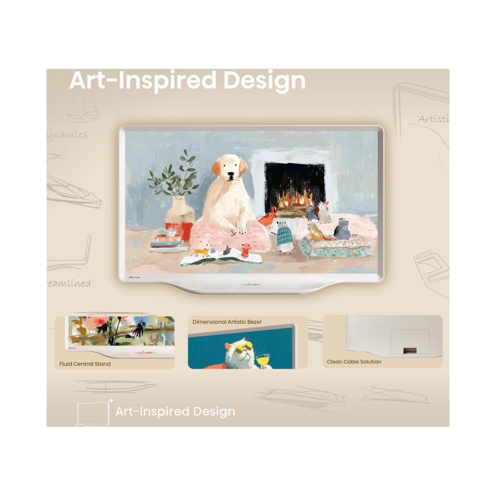 - Schermo da 32″ (81,3 cm), risoluzione Full HD 1920×1080 px, pannello QLED.