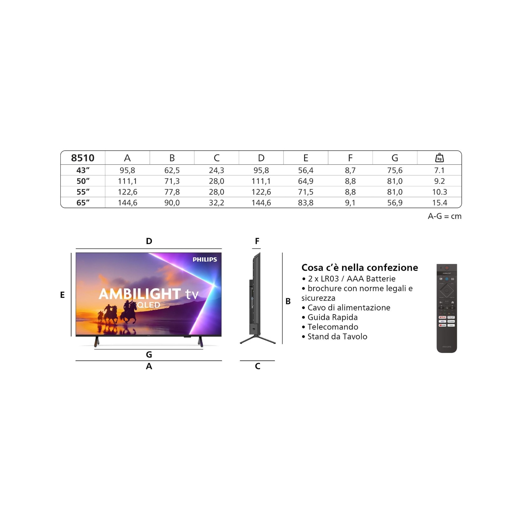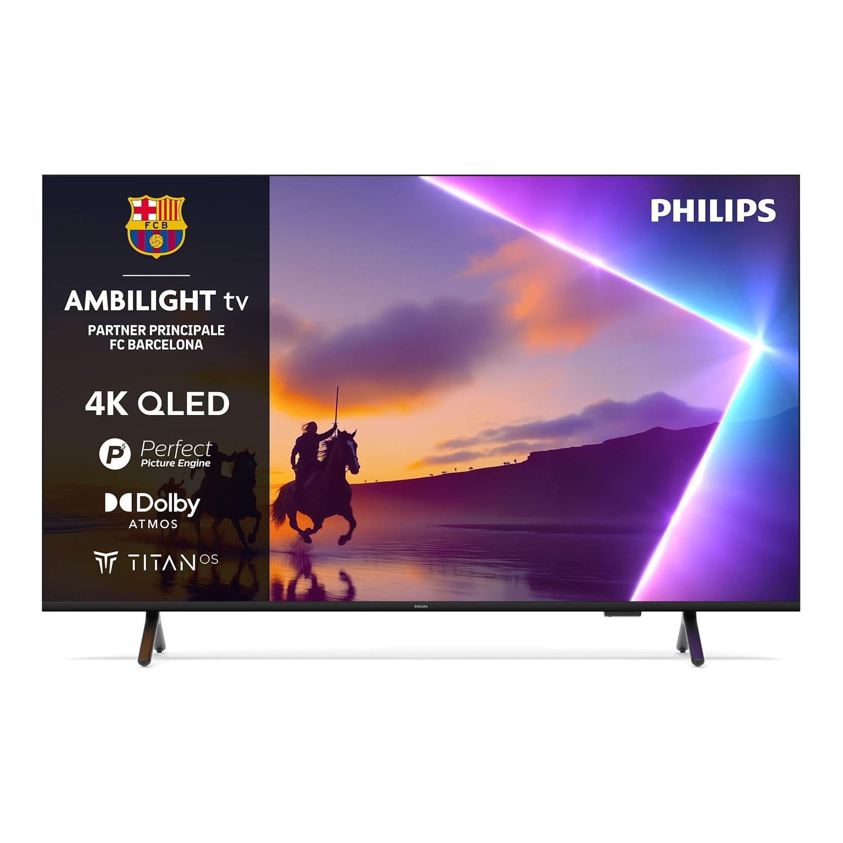 - Tecnologia Ambilight: retroilluminazione ambientale su tre lati per un’esperienza visiva più immersiva.
