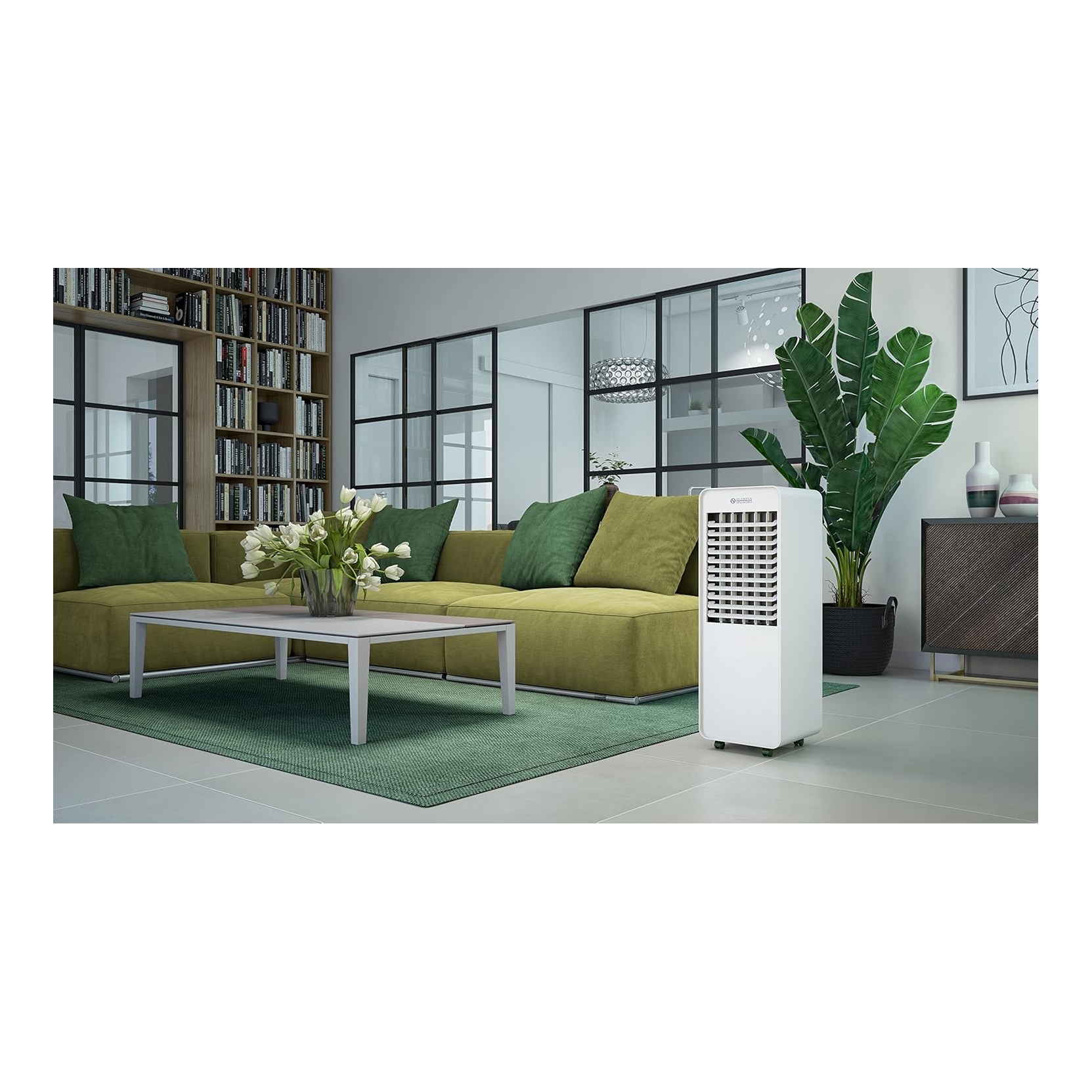 OLIMPIA SPLENDID PELER10WIFI. Raffrescatore Evaporativo - Potenza massima assorbita: 60 W - Portata aria (max): 200 m3/h - Velocità dell'aria (max): 5 m/s - Livello di potenza sonora massima dB(A): 55 - Ampia tanica di 10 lT - 3 velocità - Timer fino a 8 ore - Funzione oscillante del flusso d'aria - Display touch per una facile configurazione di tutte le funzioni - Telecomando multi-funzione: velocità, oscillazione flap orizzontali e modalità silent - Filtro antipolvere in tessuto lavabile - Filtro a nido d'ape - Ruote per un trasporto più pratico - ZERO SPESE PAYPAL - SPEDIZIONE GRATUITA